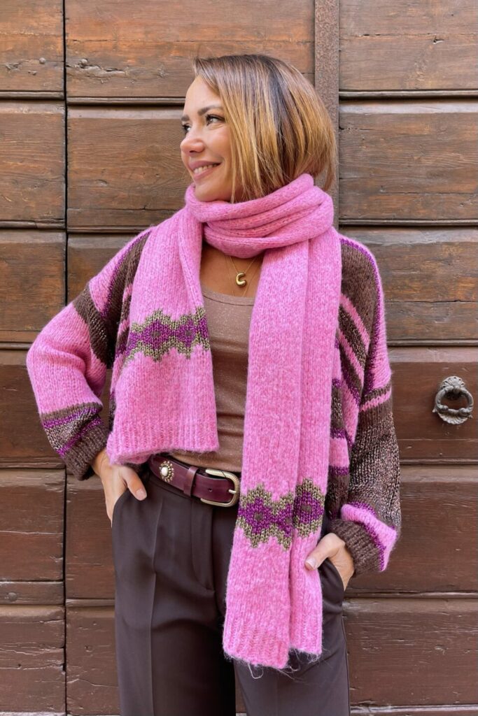 - Sciarpe, guanti, cappelli in lana o misto lana, calze spesse: non solo mantengono la temperatura, ma aggiungono dettagli stilosi. Una sciarpa colorata potrebbe essere l’elemento che spezza un outfit troppo basic.