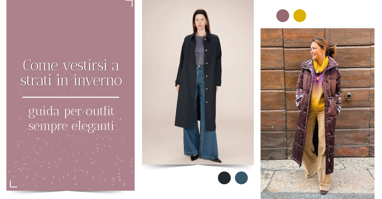 - Serata elegante: top in seta + blazer pesante + cappotto strutturato + accessori raffinati.
