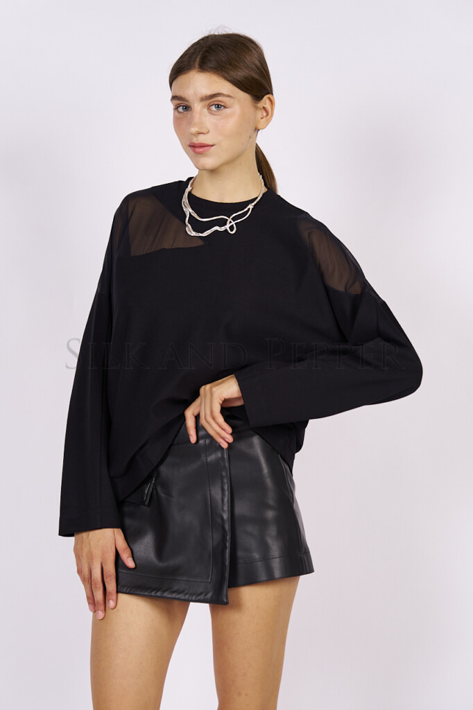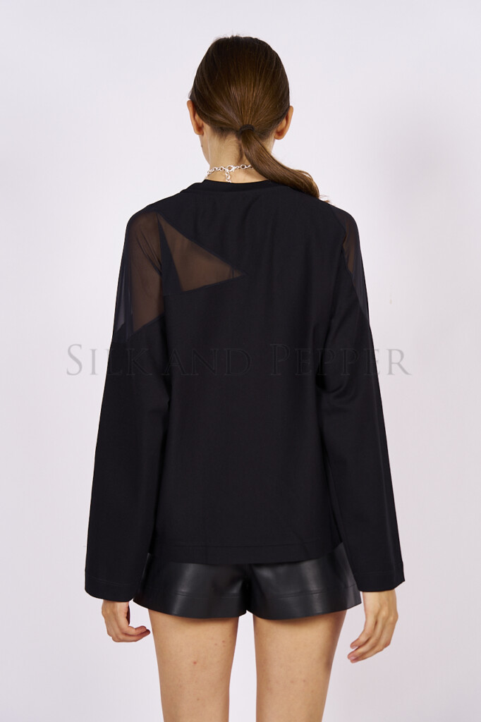 Felpa Nera Boxy con Inserti in Tulle – Comfort con Attitudine