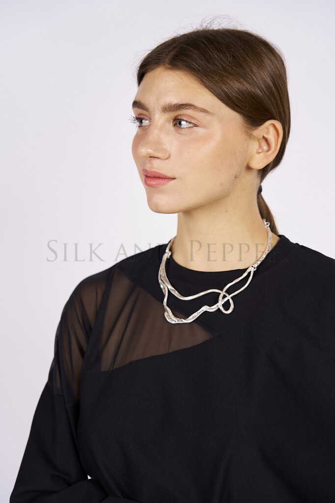 Questa felpa nera dal taglio scatolina, senza cappuccio, ha un’attitudine urbana e pulita. Ma poi guardi meglio: ci sono gli inserti in tulle vedo-non-vedo, e capisci che c’è qualcosa di più. Un contrasto intelligente. Un tocco inaspettato. Un equilibrio tra forza e femminilità.