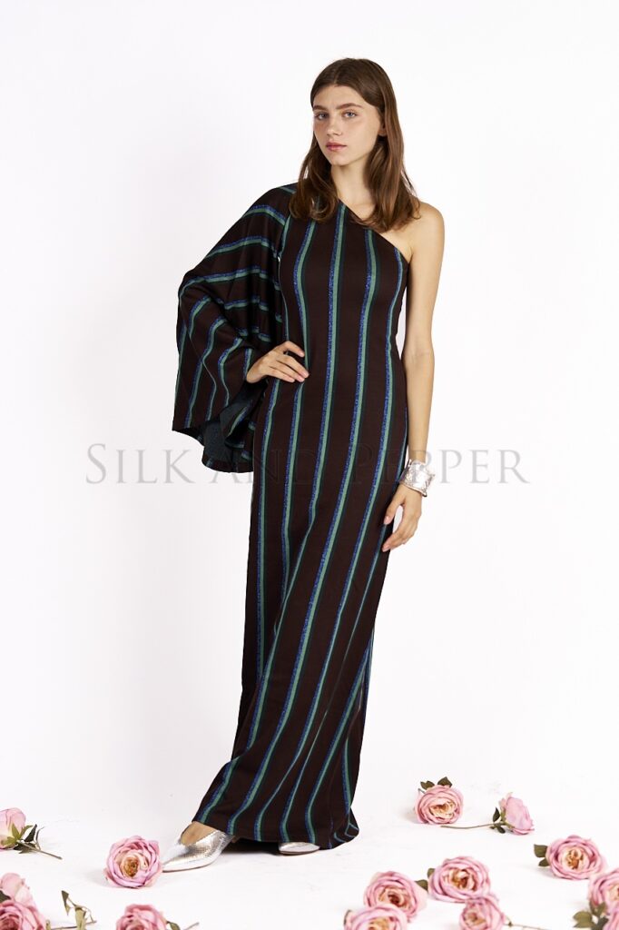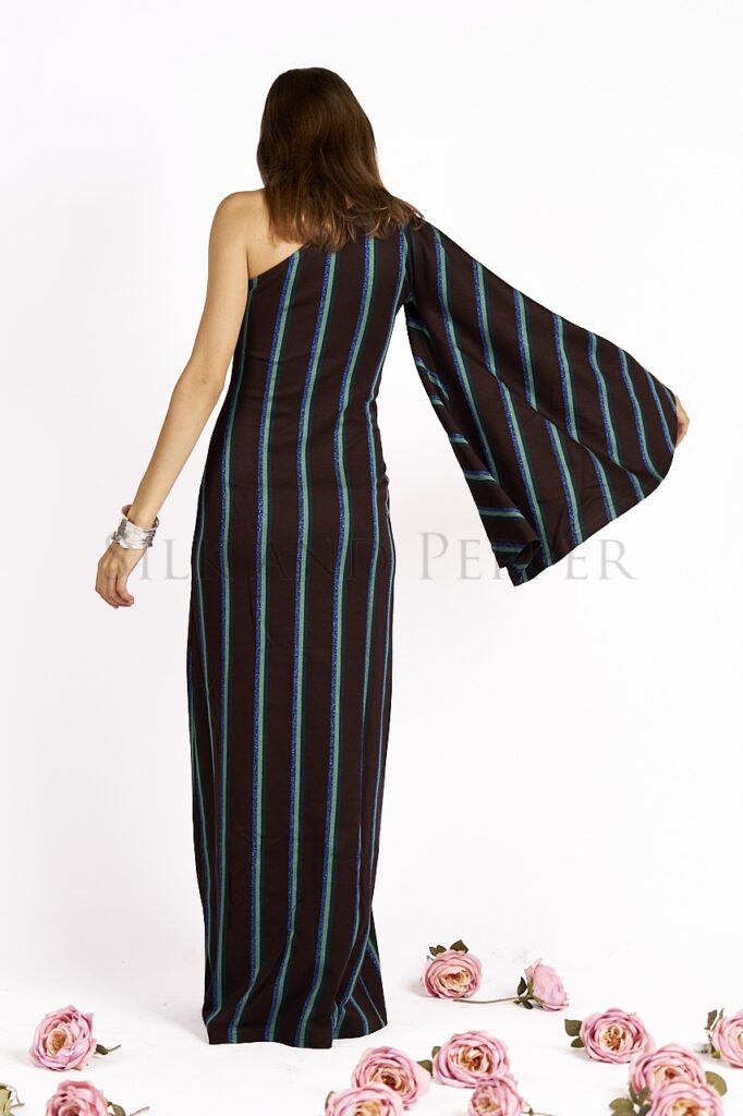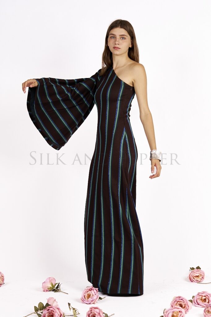 Abito Monospalla in Jacquard a Righe con Lurex – Made in Italy