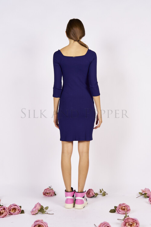 La manica a 3/4 rende il modello versatile e ideale per la mezza stagione, mentre il taglio aderente segue con eleganza le linee del corpo, valorizzandole con discrezione. Il colore blu, intenso e sofisticato, si abbina facilmente sia a look da giorno che a outfit serali.