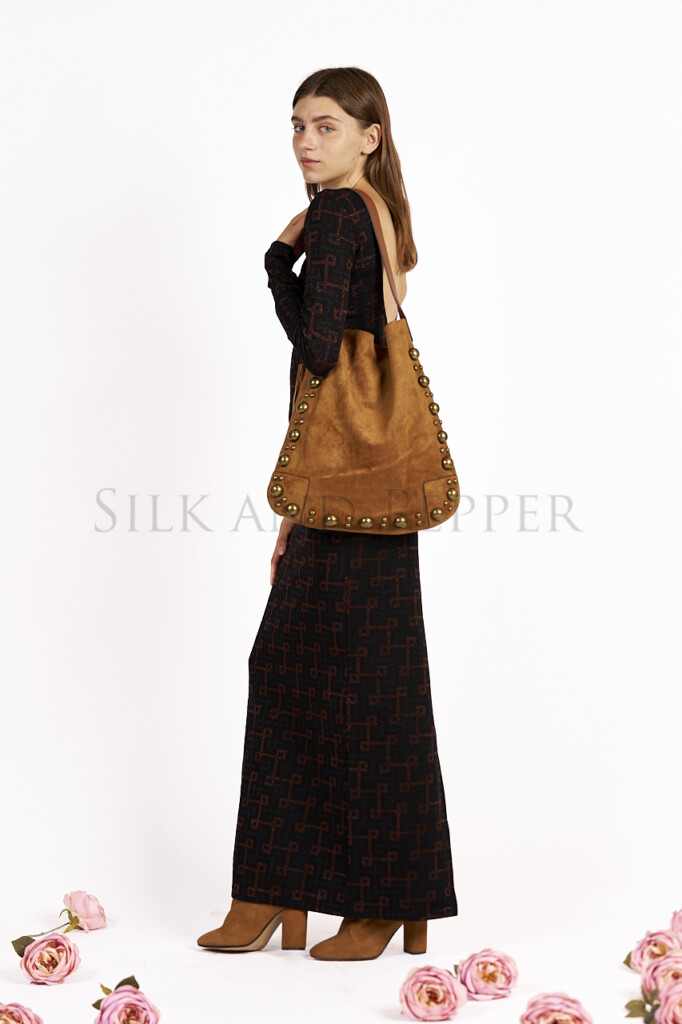 Sensuale ed elegante, questo abito lungo è pensato per valorizzare la silhouette con stile e raffinatezza. Realizzato in tessuto jacquard fantasia su base viscosa, cade morbido sul corpo e offre una sensazione fluida e confortevole al tatto.