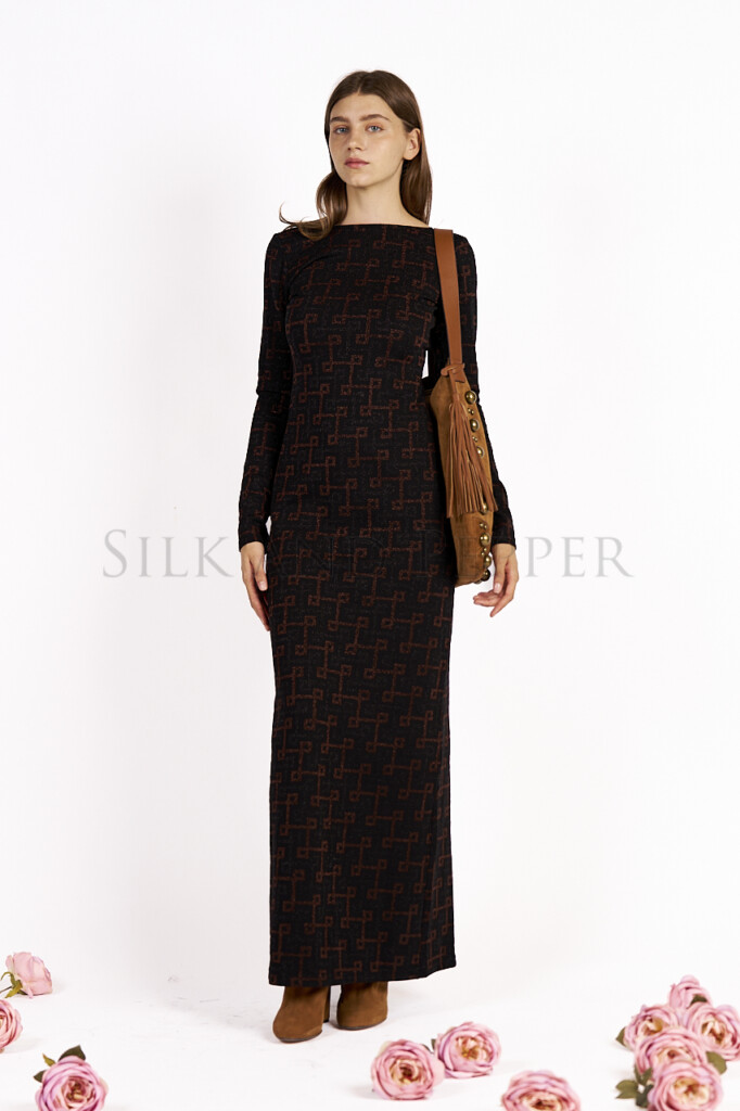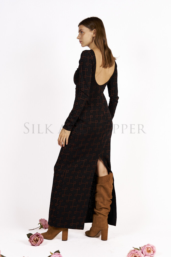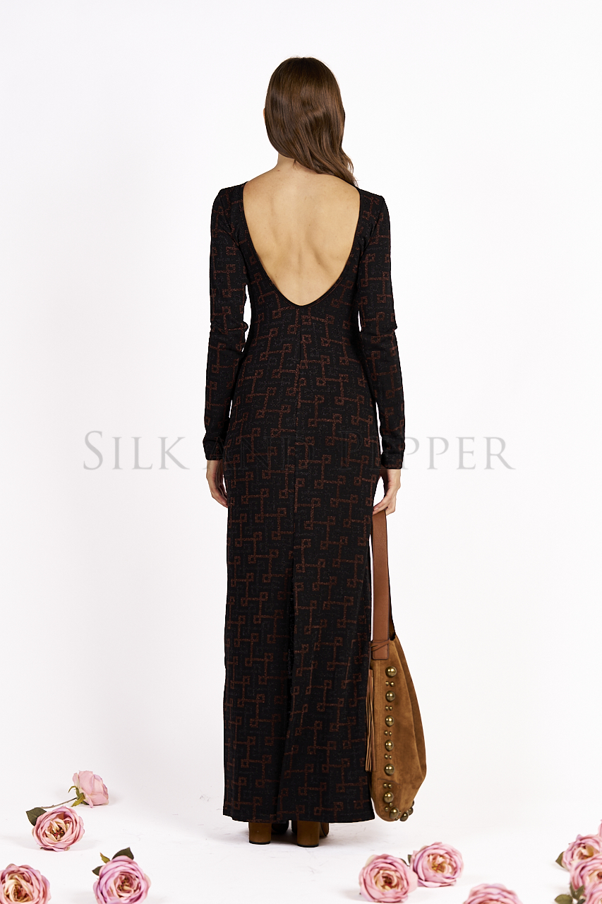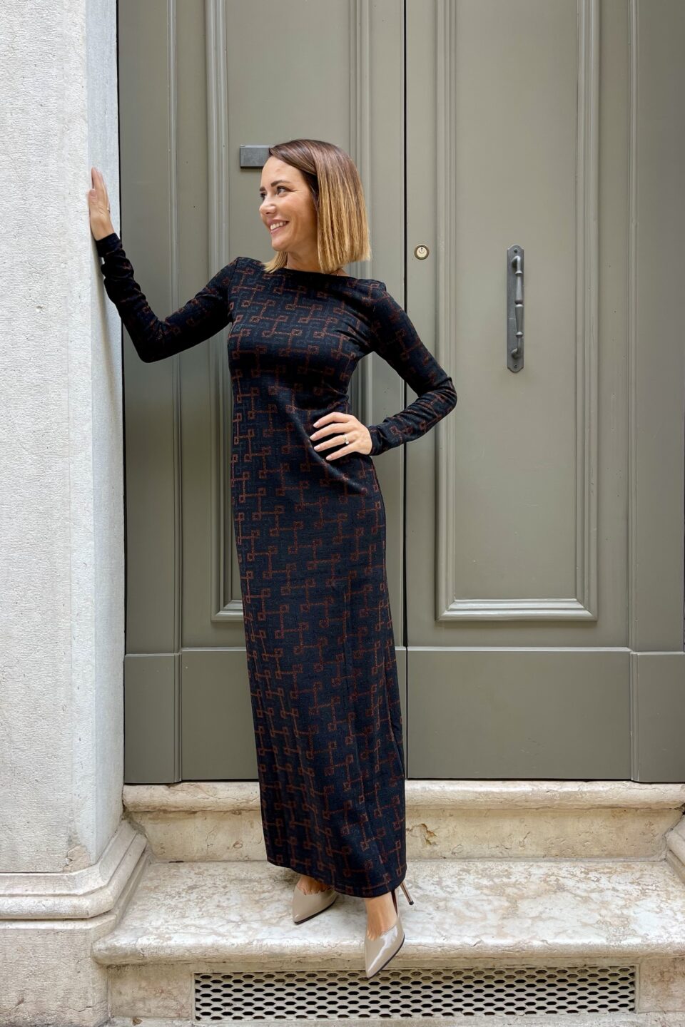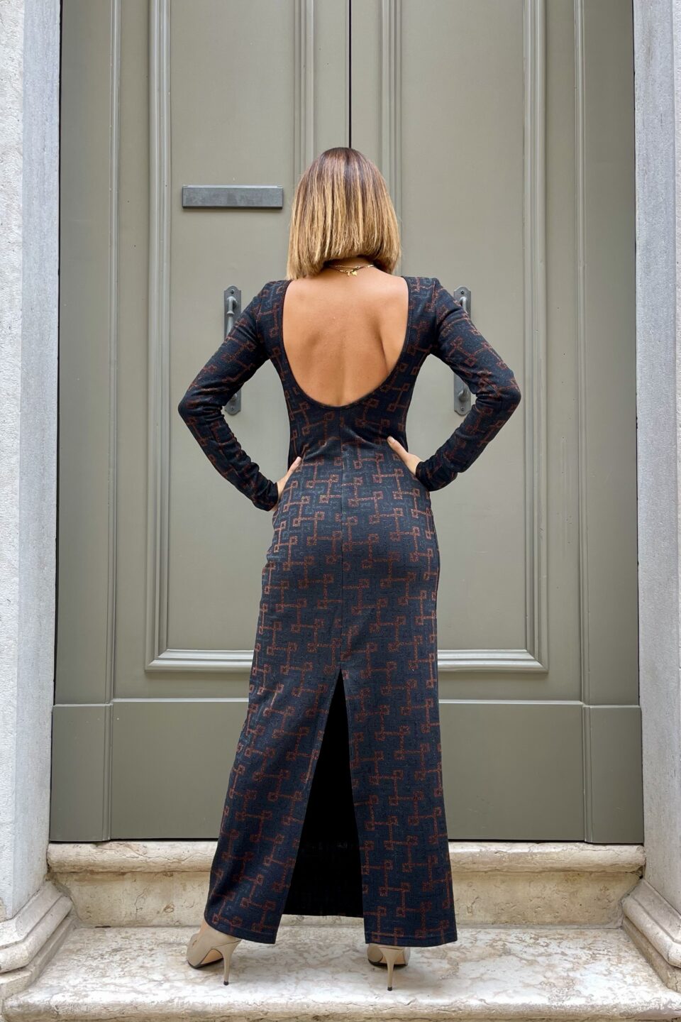 Abito Lungo con Scollo Profondo sulla Schiena – Jacquard Fantasia in Viscosa Made in Italy