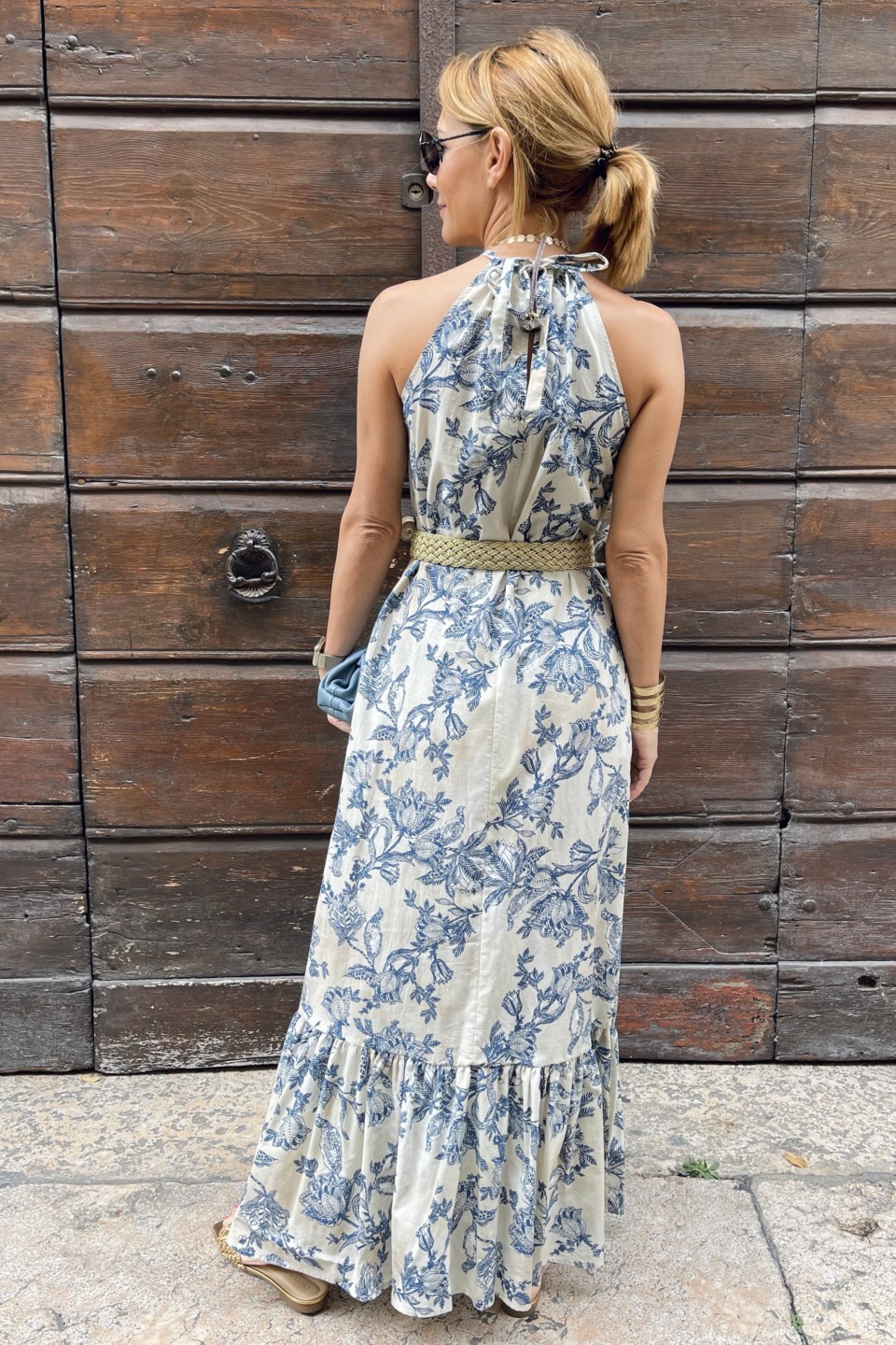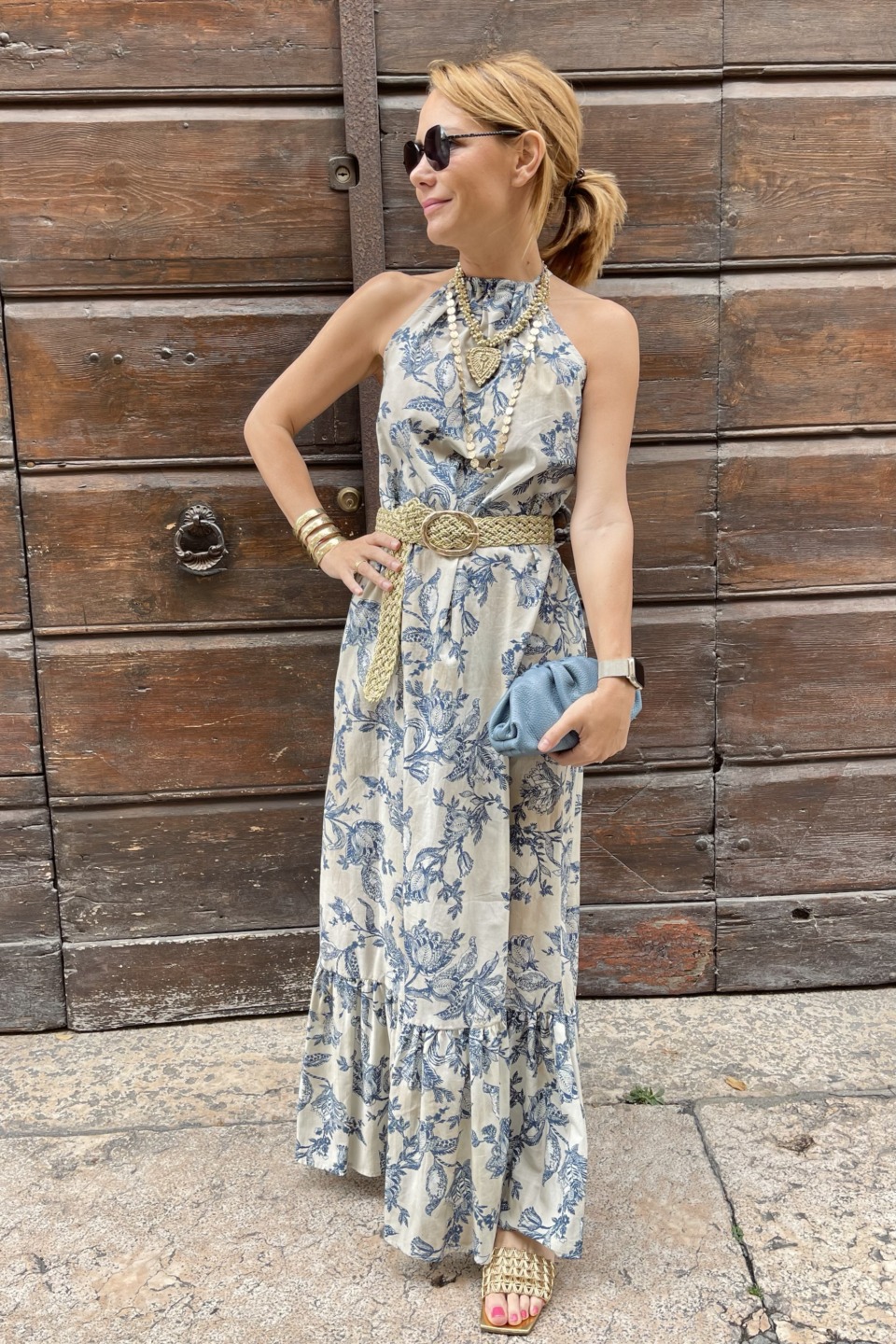 Abito lungo arriccio fantasia panna 100% cotone Made in ITALY
