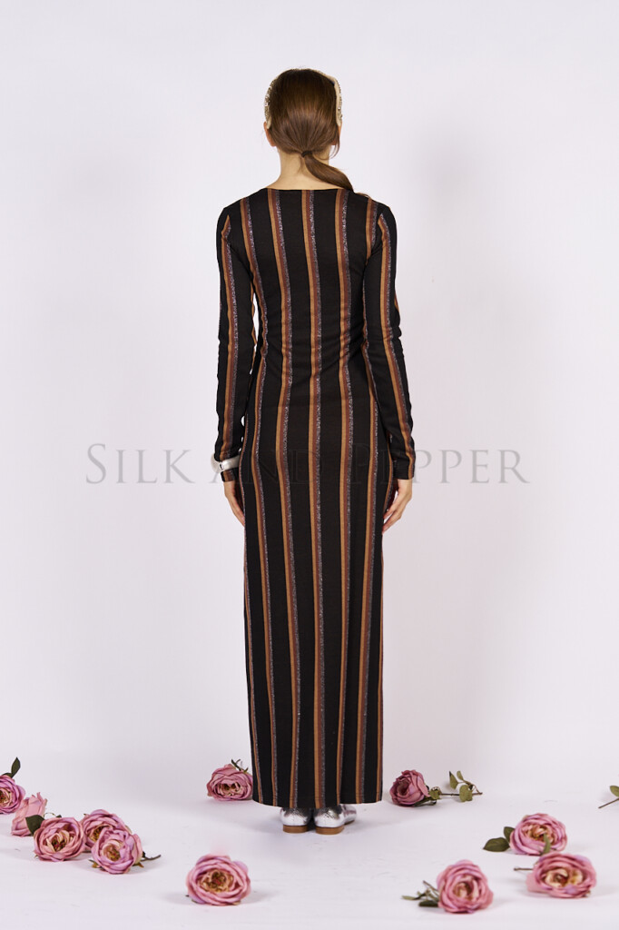 Abito Lungo Girocollo con Laccetti – Jacquard Fantasia | Made in Italy