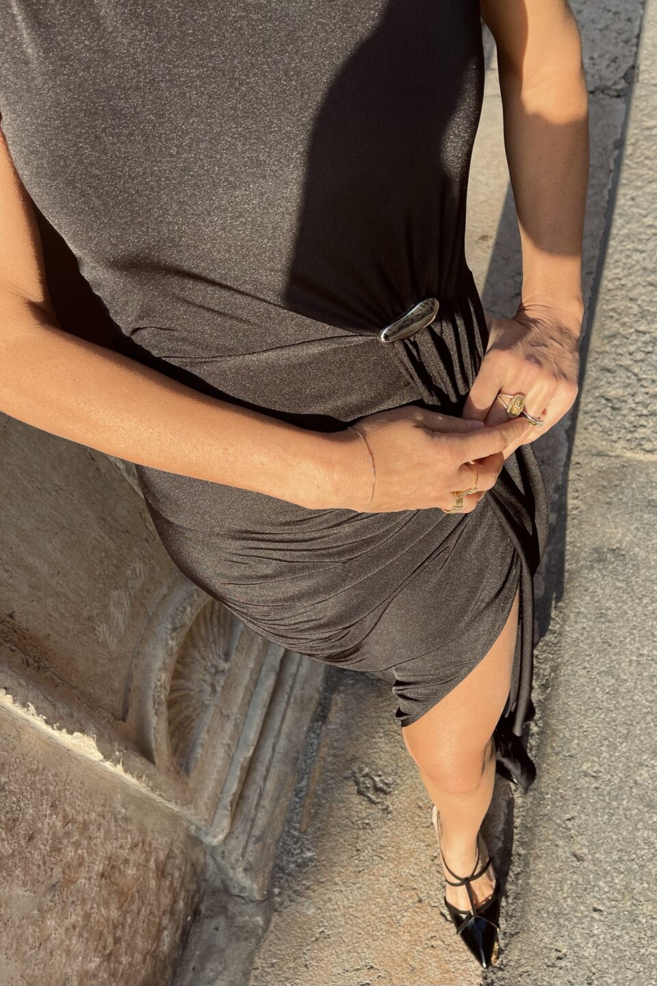 • Drappeggio in vita con spilla gioiello argento
