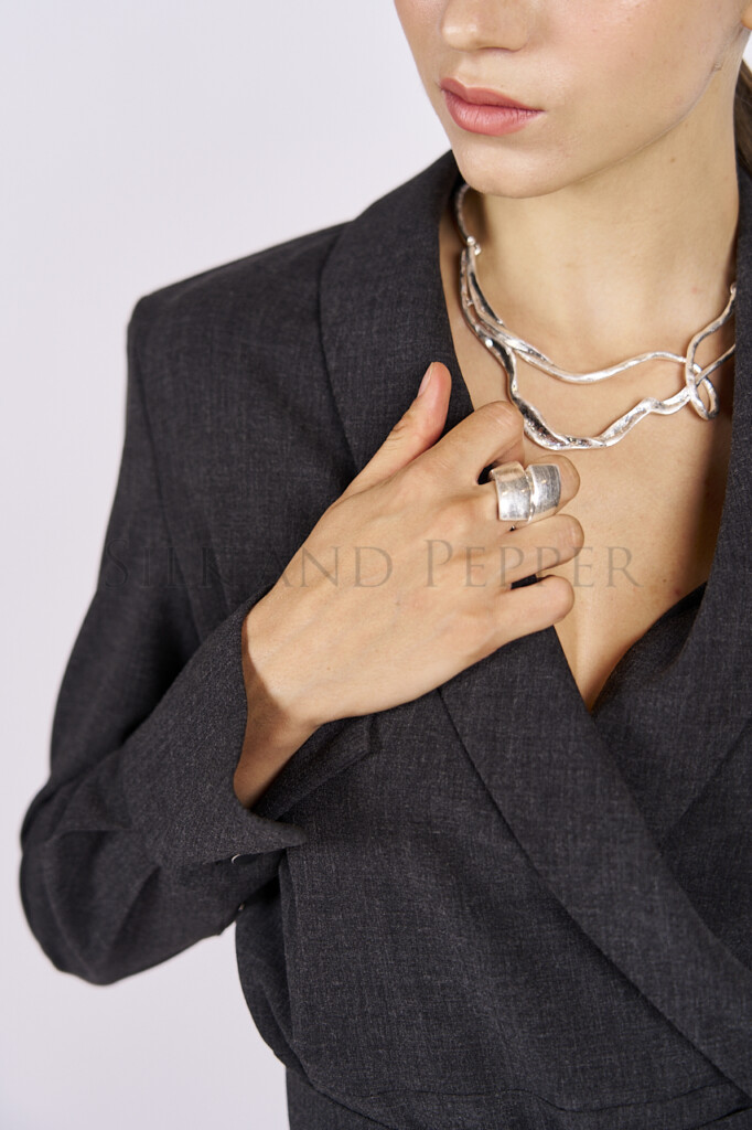 Le maniche lunghe completano il look, donando un equilibrio perfetto tra comfort e raffinatezza.