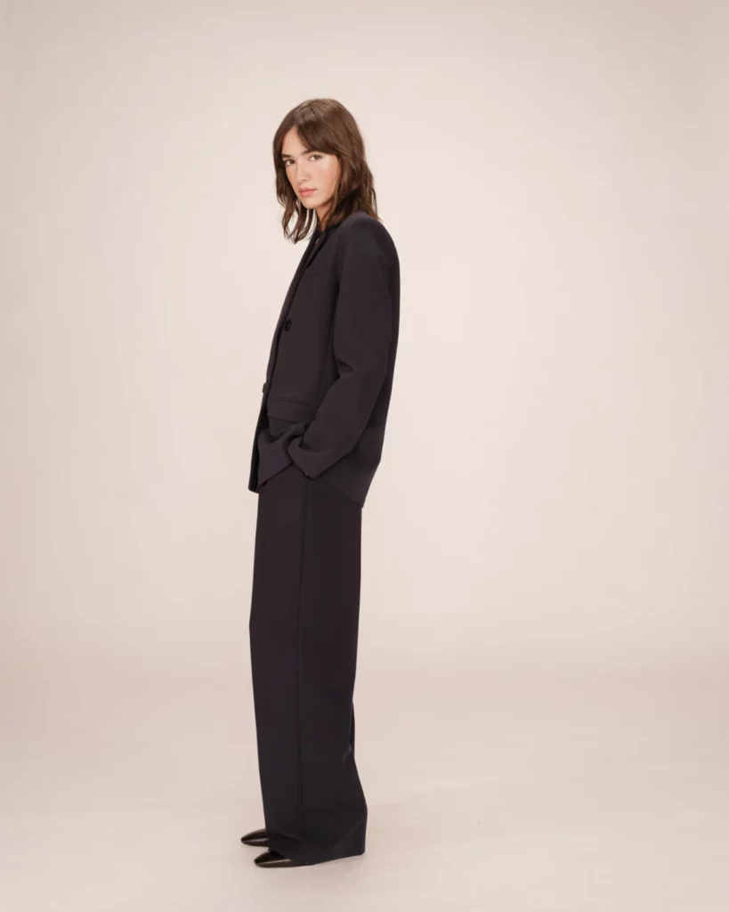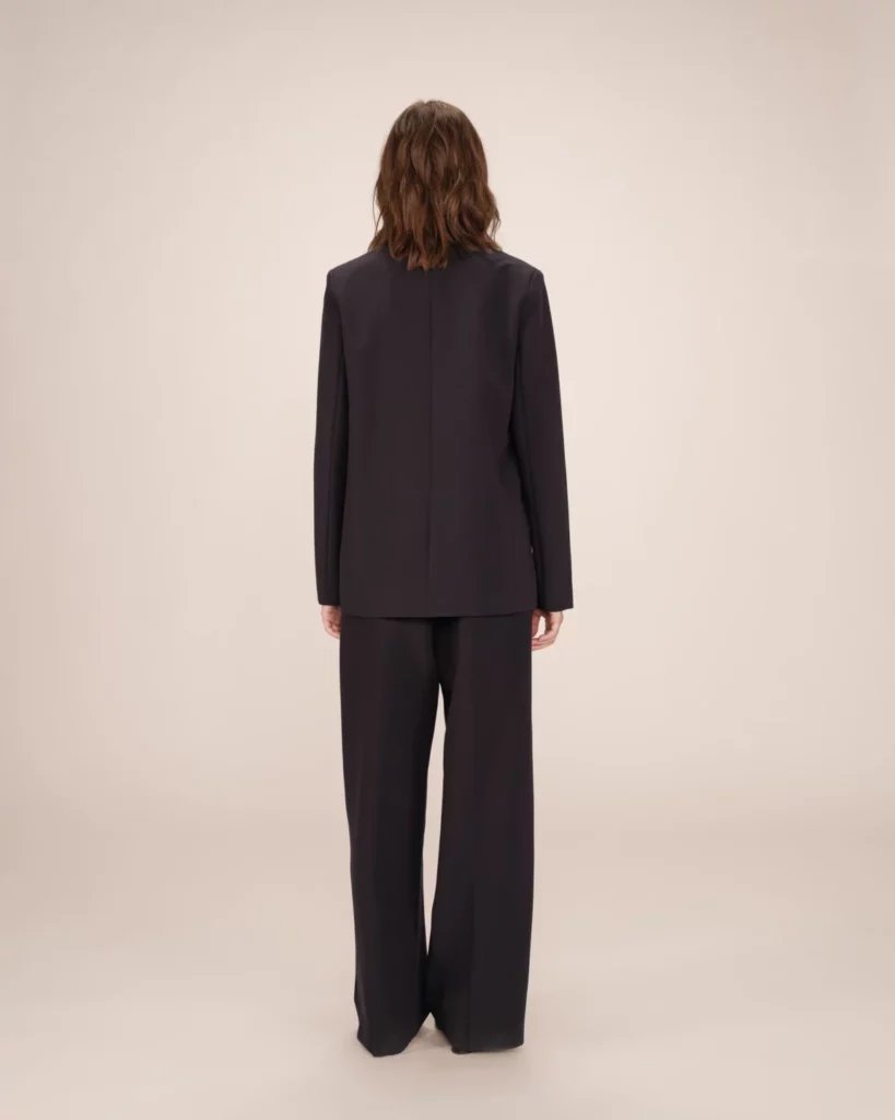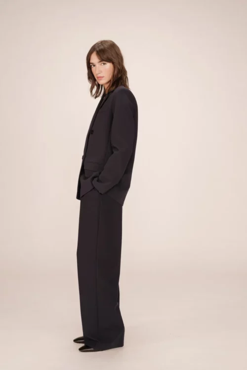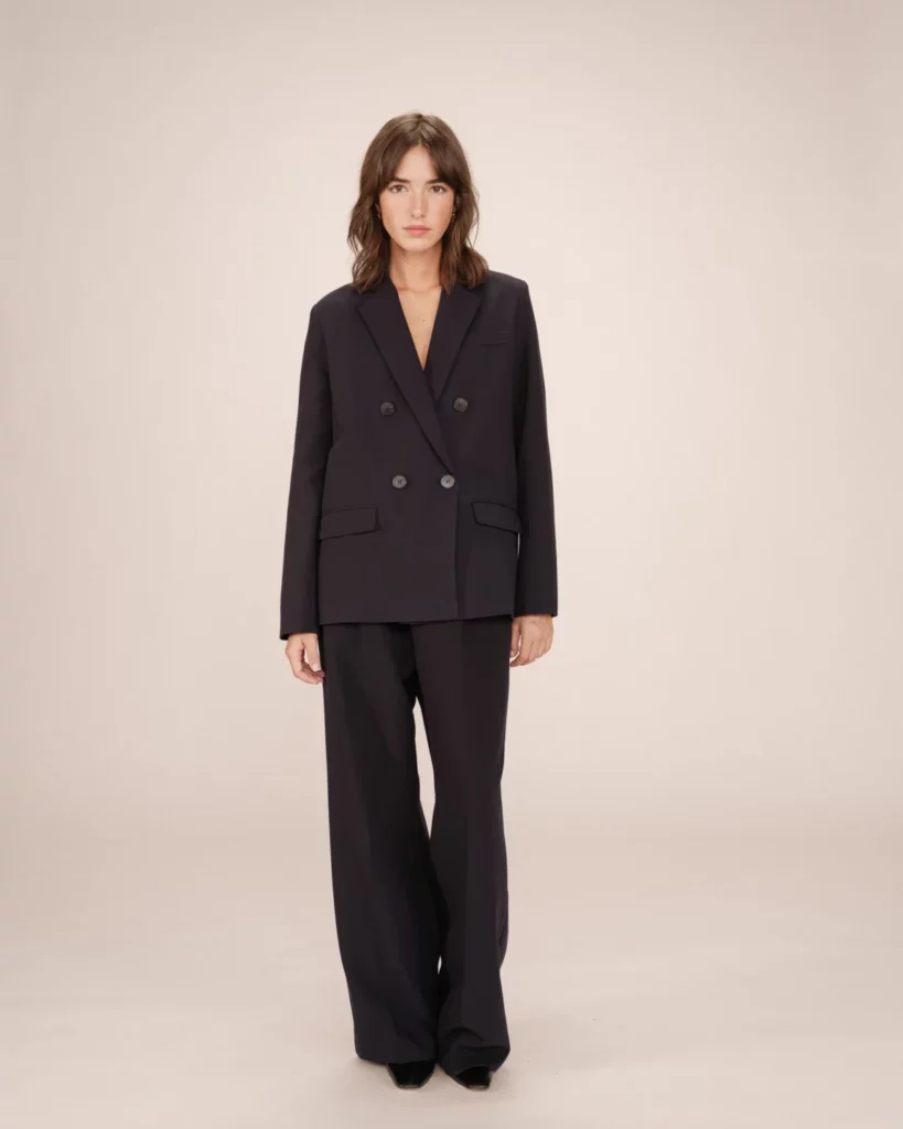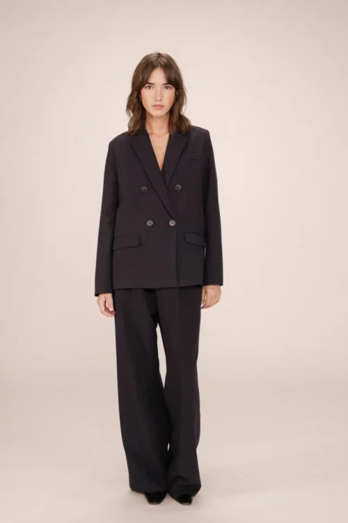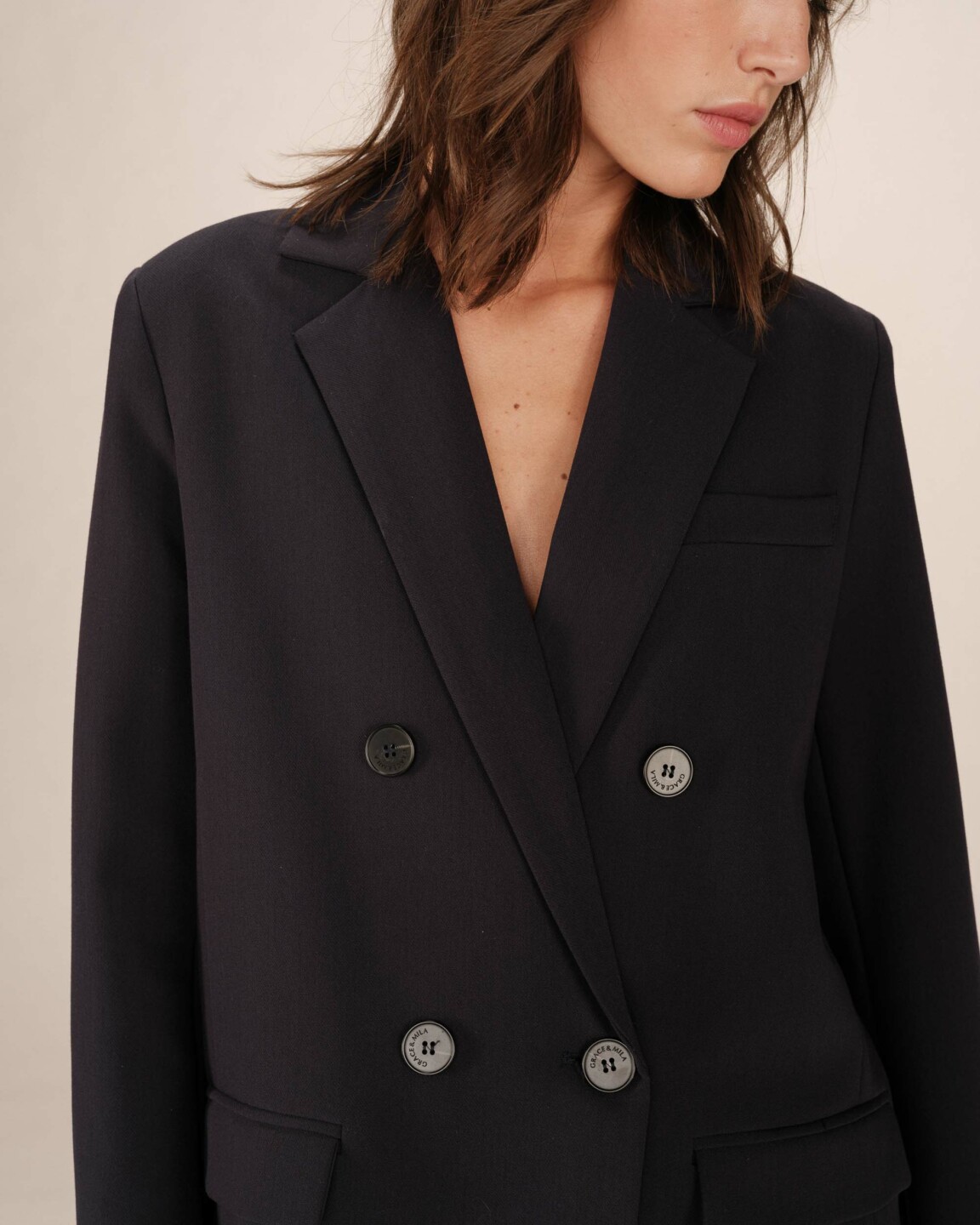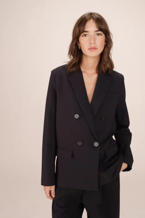 Un blazer strutturato e senza tempo, ideale per creare una silhouette femminile moderna, abbinabile a pantaloni, gonne o jeans per un look versatile e alla moda.