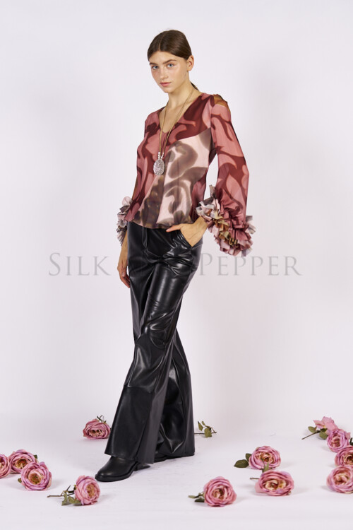 Una blusa ideale per la donna che ama distinguersi con stile, scegliendo capi originali e ricercati, perfetti da abbinare sia a pantaloni eleganti che a denim per un look sofisticato ma versatile.
