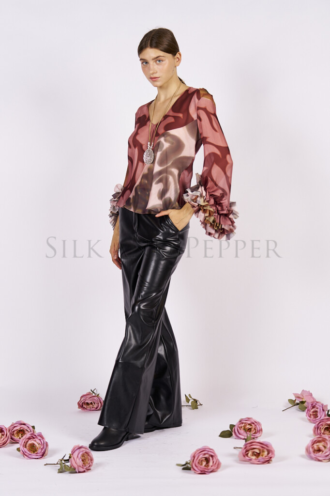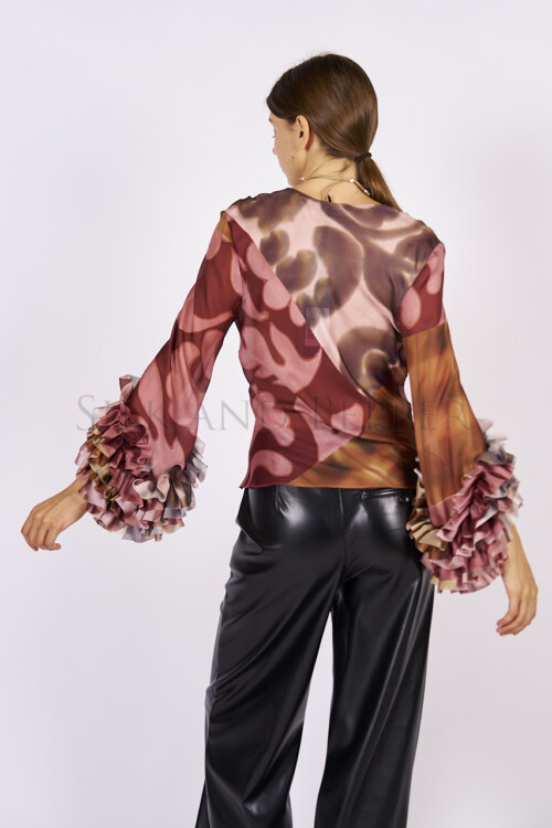 Blusa Fantasia con Rouches Voluminose – Scollo a V | Semitrasparente