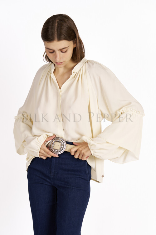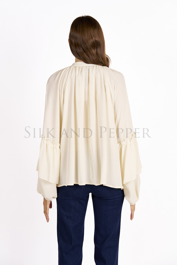 Eleganza e comfort si incontrano in questa blusa donna dal design sofisticato. Realizzata in 100% viscosa, garantisce morbidezza e vestibilità impeccabile. Il collo coreana dona un tocco raffinato, mentre le maniche balloon aggiungono volume e stile, perfette per un look femminile e moderno.