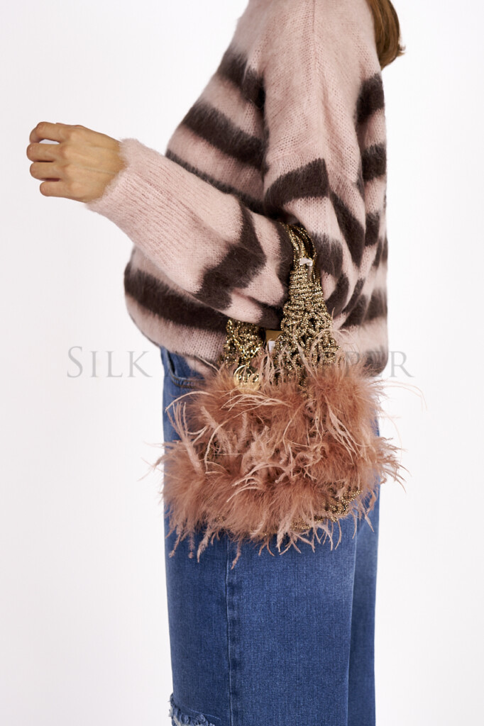 Borsa intrecciata con piume pink rose
