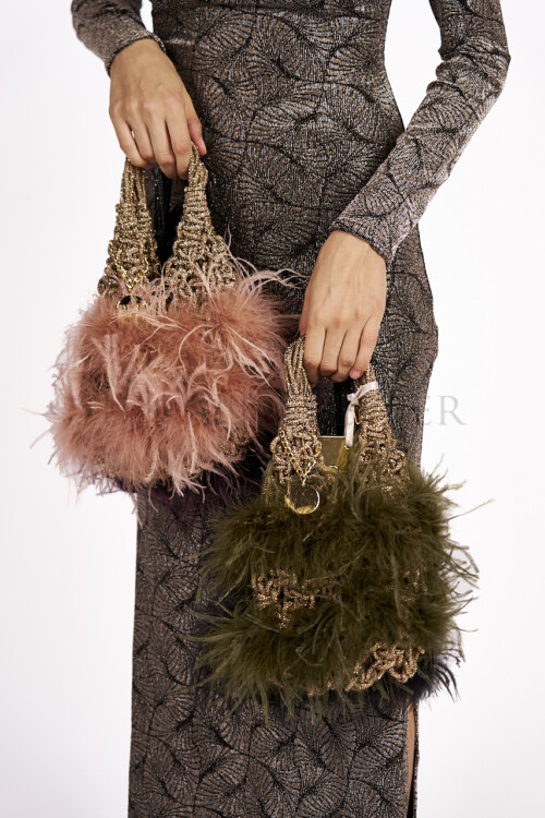Ideale da abbinare ad abiti da sera, look da cerimonia o outfit glamour, questa borsa con paillettes e piume è l’accessorio che non può mancare nel guardaroba di ogni donna.
