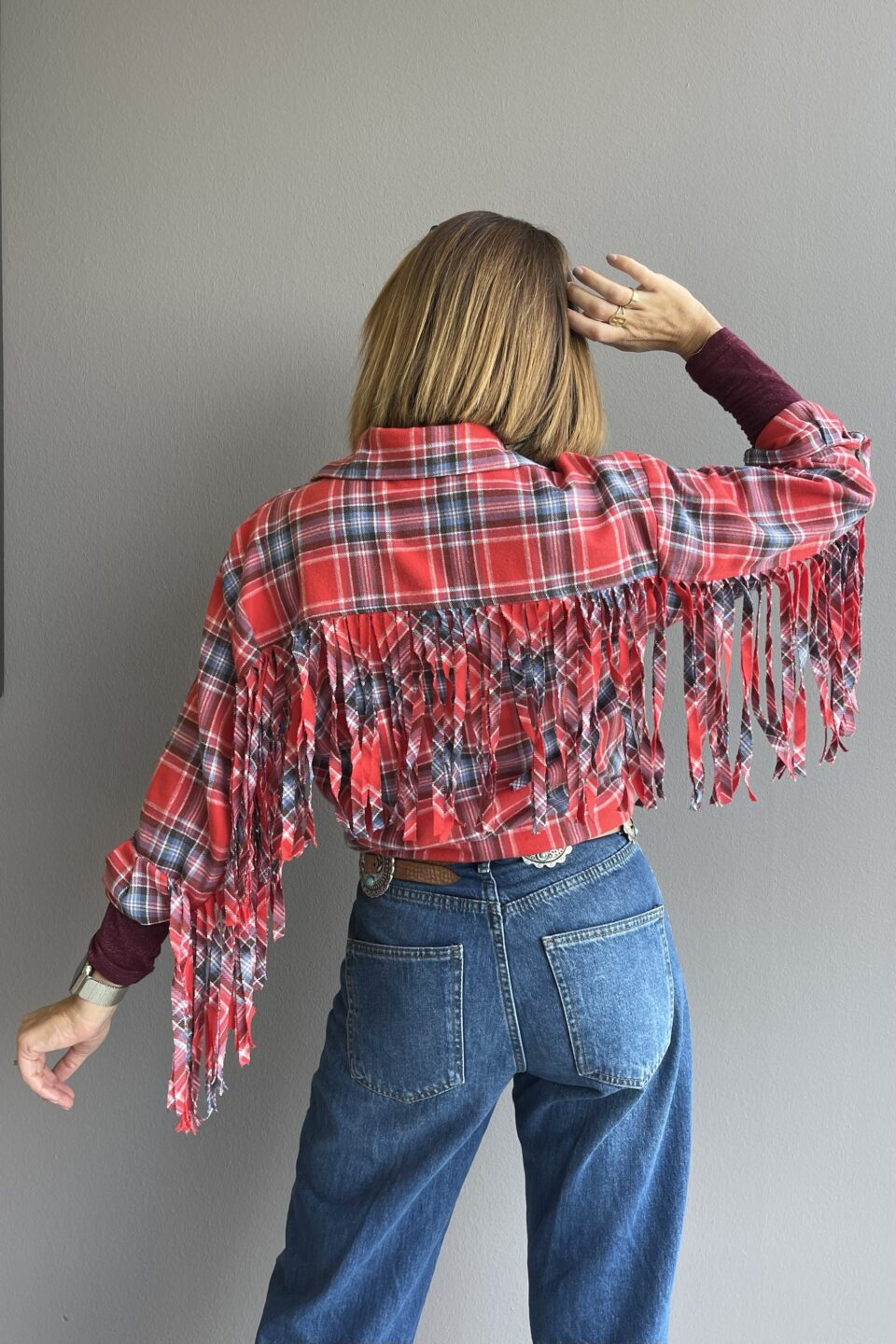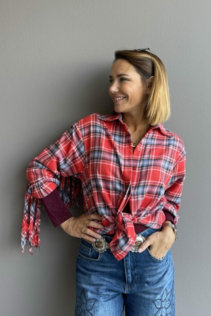 Camicia Check Rossa con Frange – 100% Cotone Made in Italy