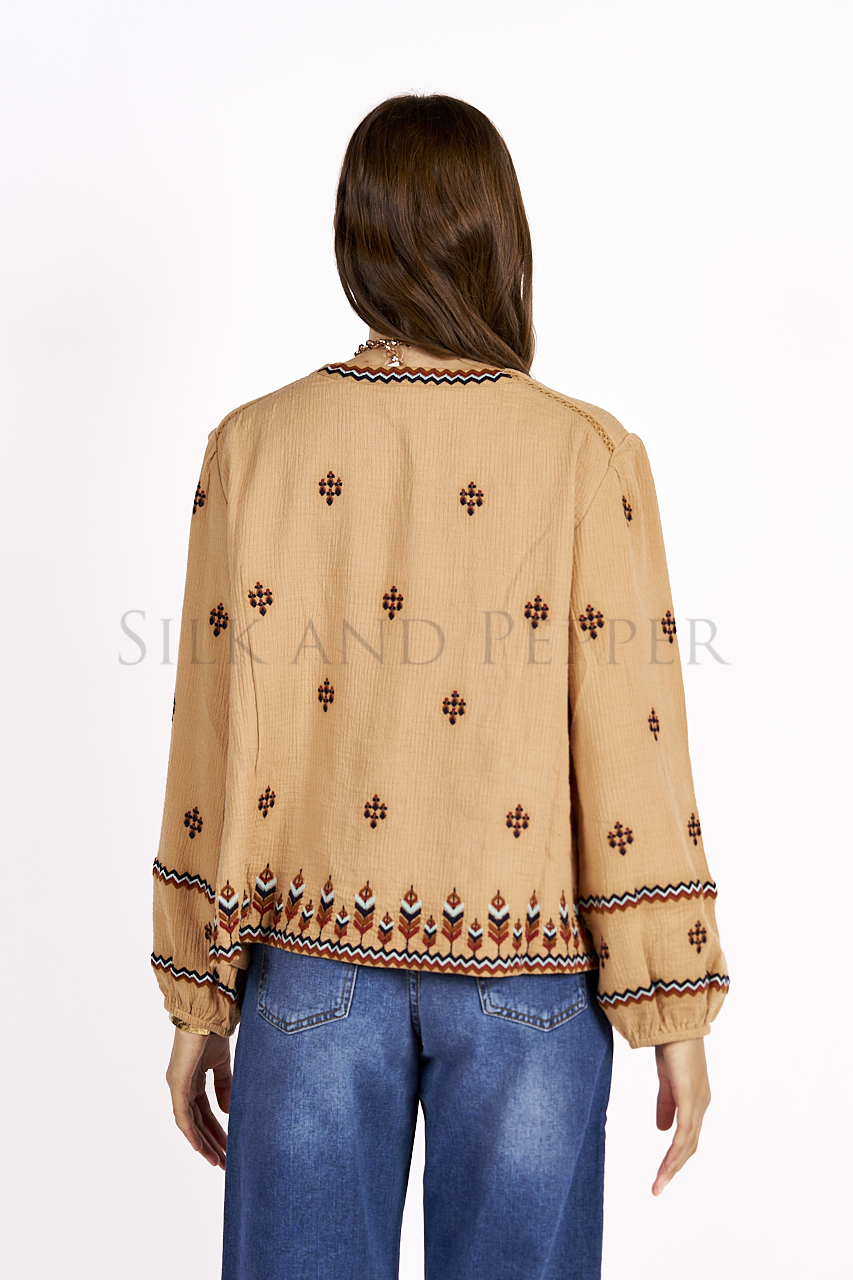 Perfetta per chi cerca una camicia donna ricamata che unisca comodità e stile con un tocco etnico raffinato.