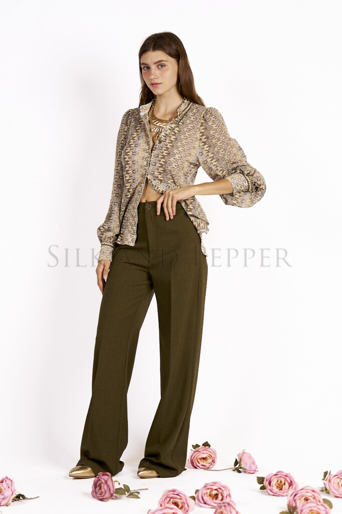 Perfetta da abbinare a pantaloni eleganti, jeans o gonne per un outfit chic e contemporaneo. La camicia Rachel Military Flame è la scelta ideale per chi cerca stile, qualità e originalità in ogni dettaglio.