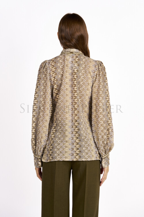 Design militare moderno: colore salvia military arricchito da toni neutri e dettagli in lurex dorato per un tocco di luce sofisticato.