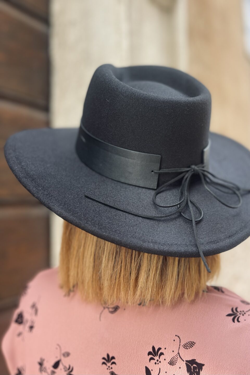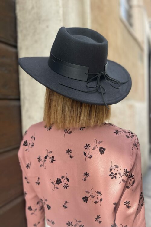 Aggiungi un tocco di eleganza e originalità al tuo look con questo cappello a tesa larga da donna in morbido velluto nero, perfetto per completare outfit casual chic o più raffinati. La decorazione del fiocco sul retro dona carattere e luminosità, trasformando un accessorio classico in un dettaglio di stile unico.