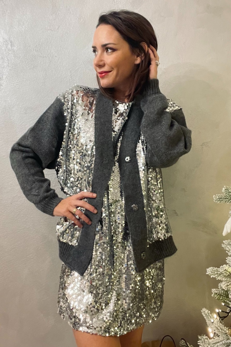 Cardigan antracite paillettes