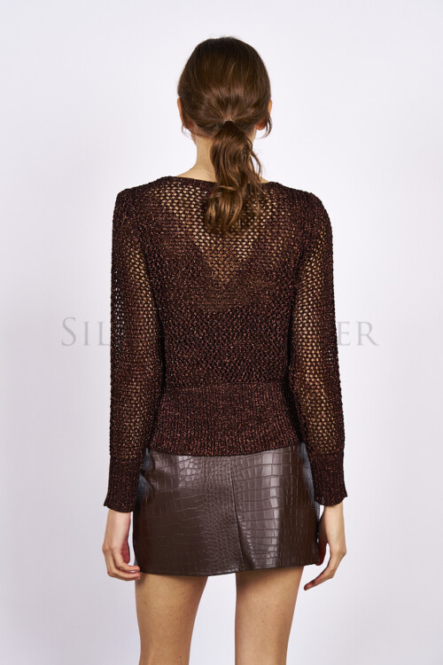 Acquista il cardigan lurex moro traforato da donna, leggero e luminoso con manica lunga e taglia unica.