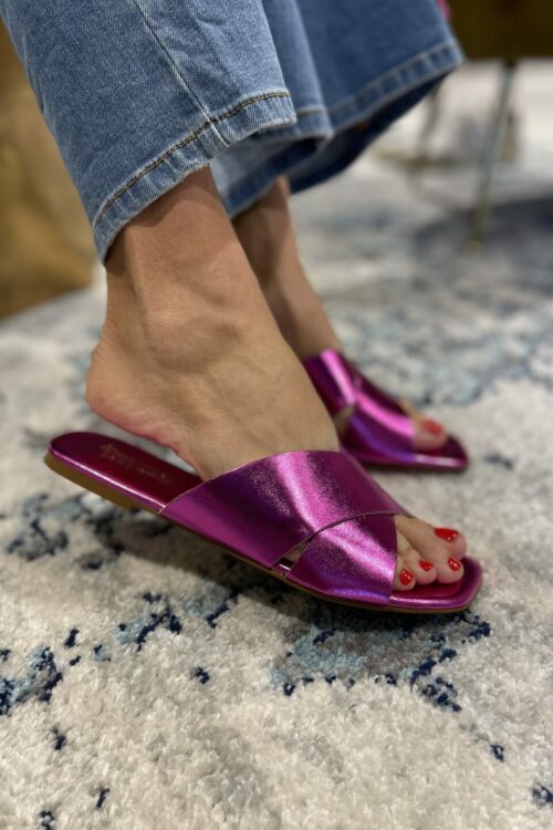 Ciabattina incrociata laminata fuxia