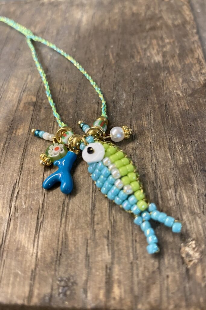 Realizzata con perline di alta qualità e un elegante pendente a forma di pesce, la collana green fish richiama i colori della natura e del mare, evocando atmosfere vacanziere e spirito libero. La struttura in metallo ipoallergenico, nickel free e steel free, la rende ideale anche per le pelli più sensibili, garantendo comfort e sicurezza durante tutta la giornata.