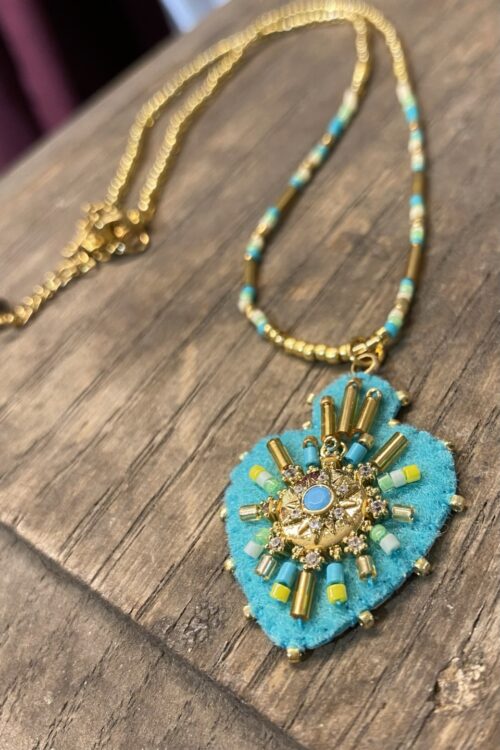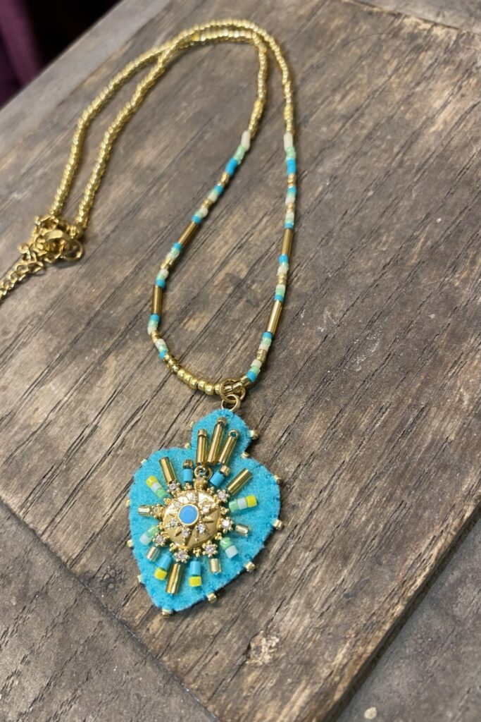 Sautoir en perle de Miyuki et pendentif en feutre serti de perles et symboles