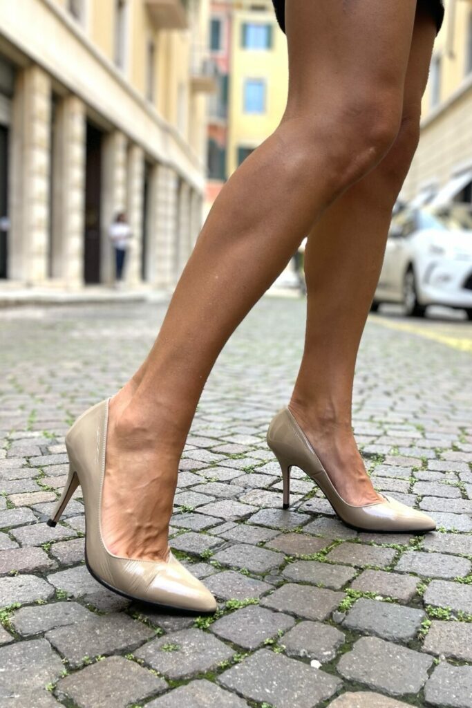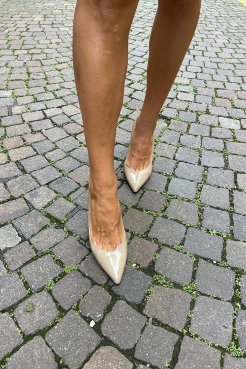 Perfetta da indossare con abiti da cerimonia, outfit da ufficio o look serali, questa décolleté beige si distingue per il suo design senza tempo e la qualità artigianale Made in Italy.