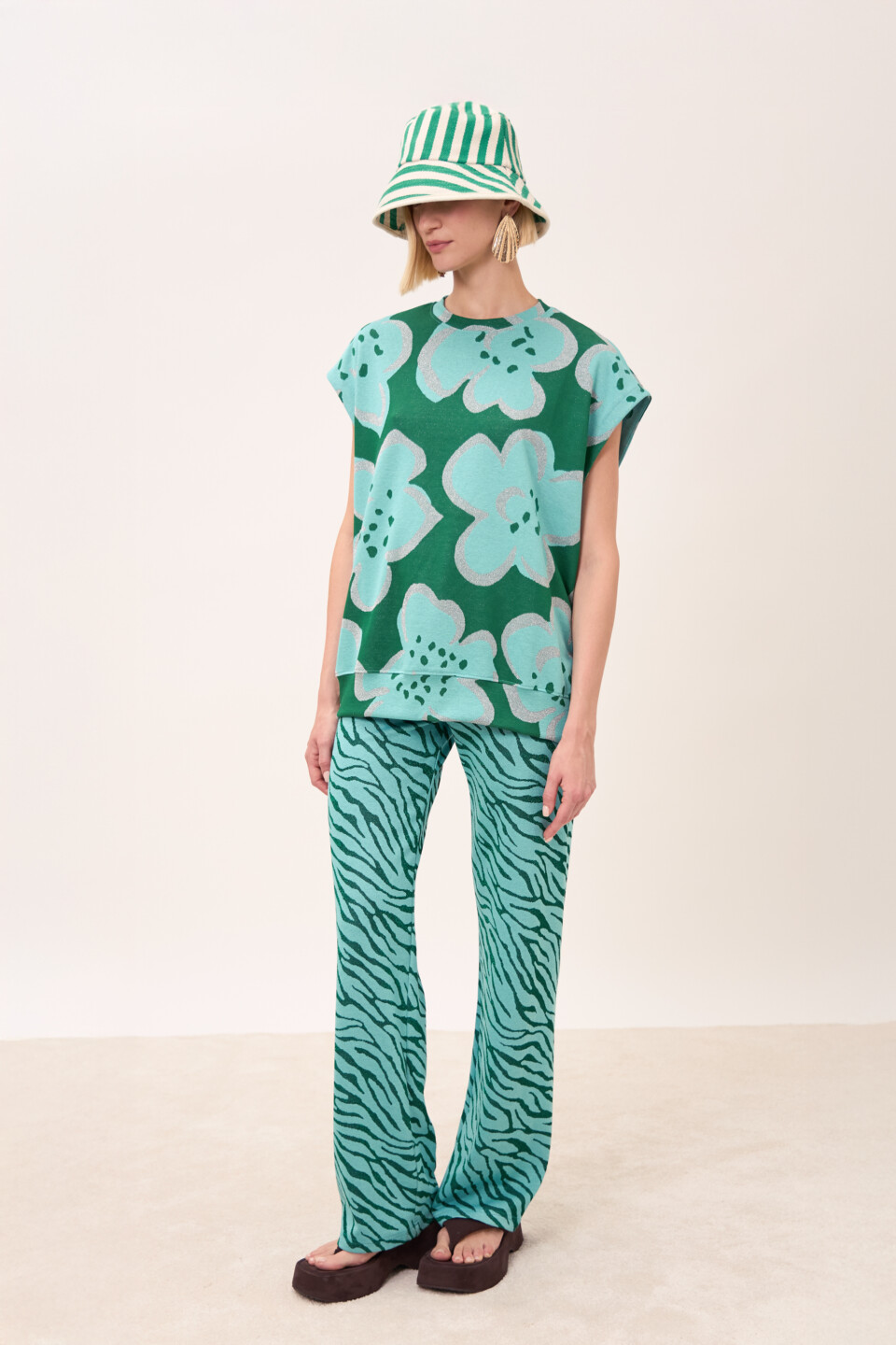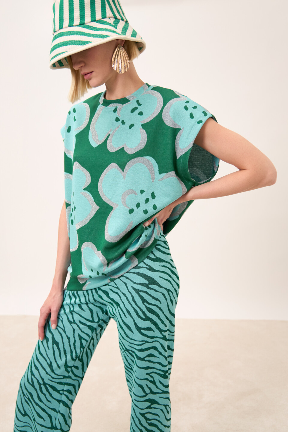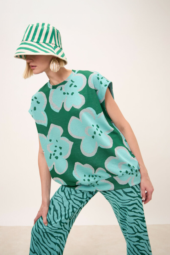 Felpa Blossom Felce smanicata in jacquard fantasia | Made in Italy