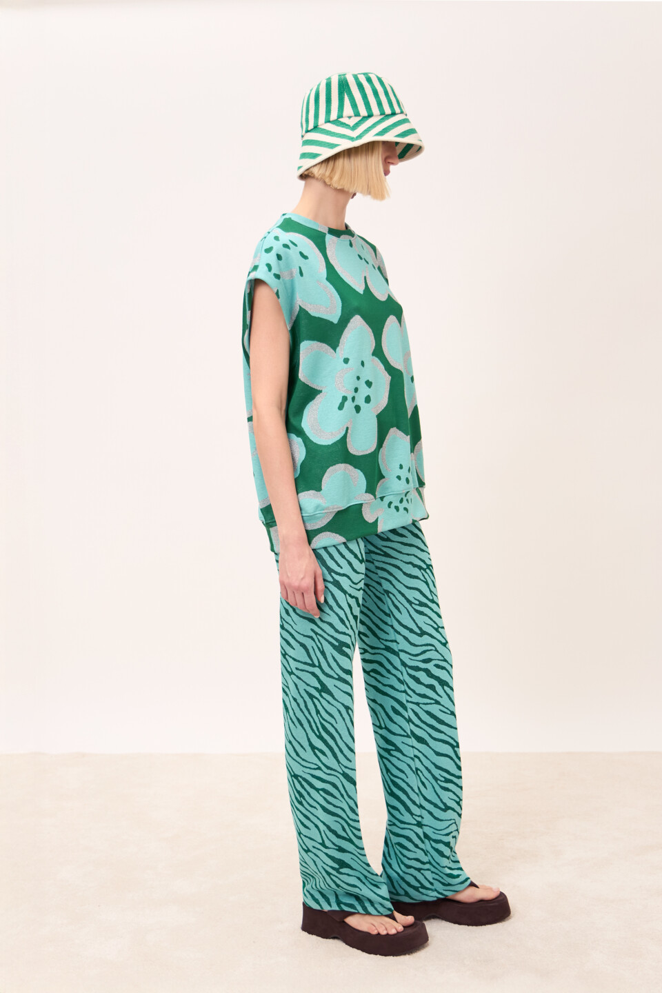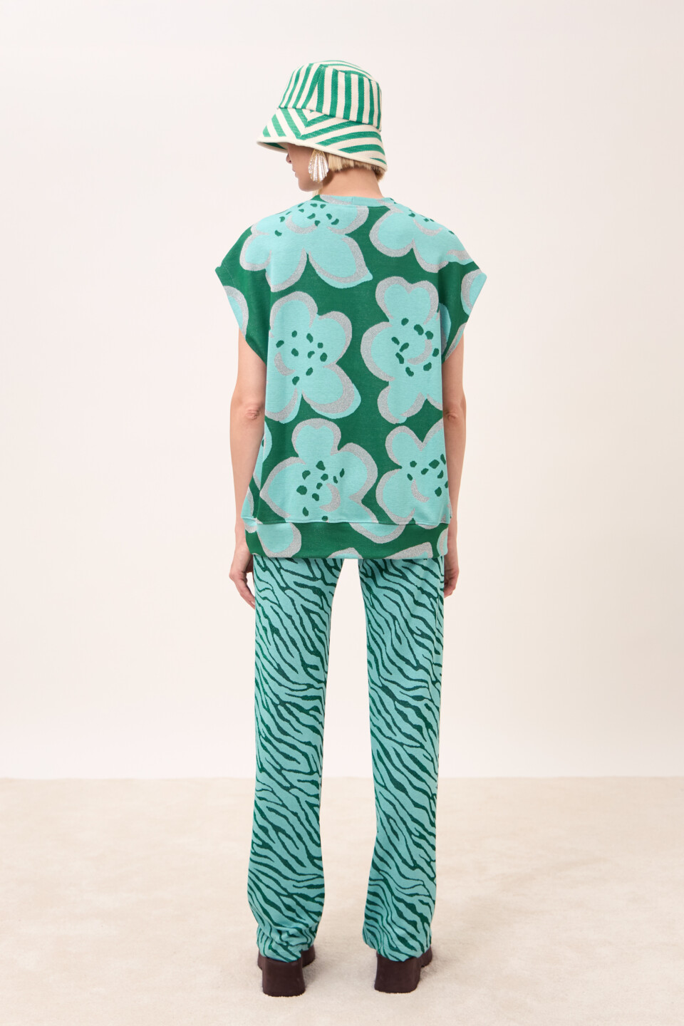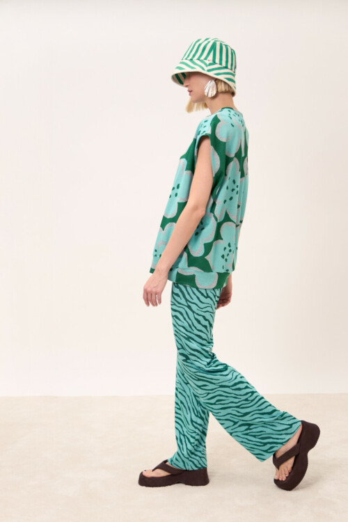 Felpa Blossom Felce girocollo smanicata in tessuto jacquard fantasia.