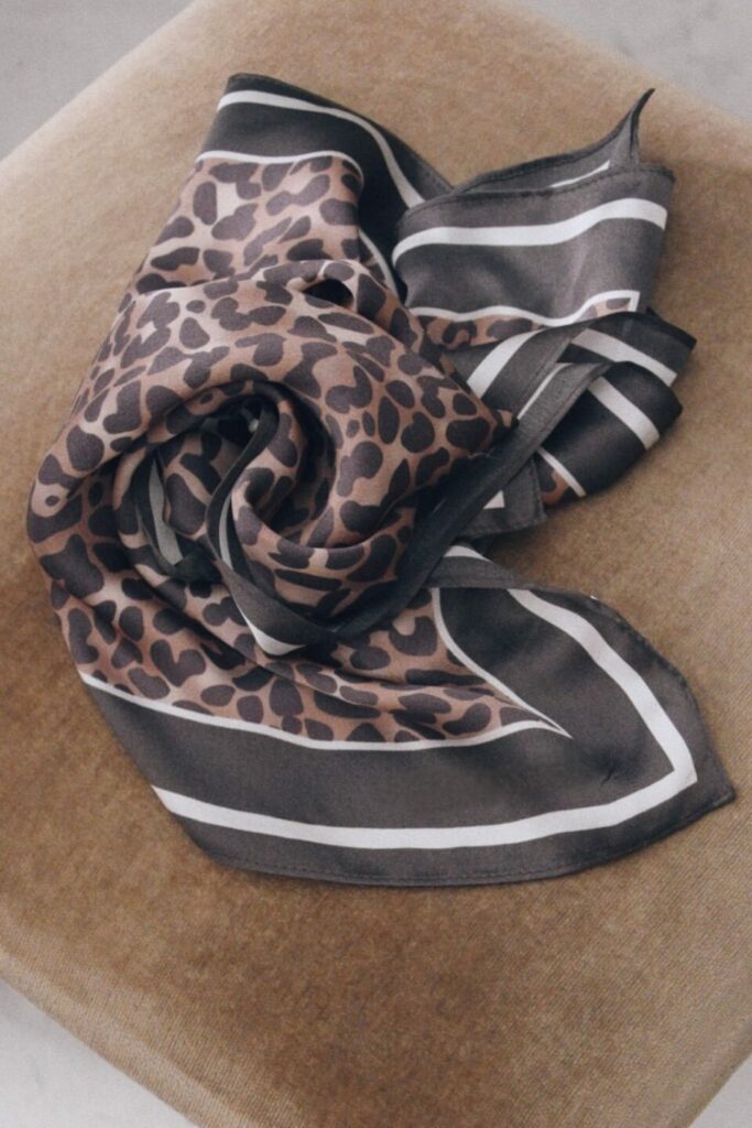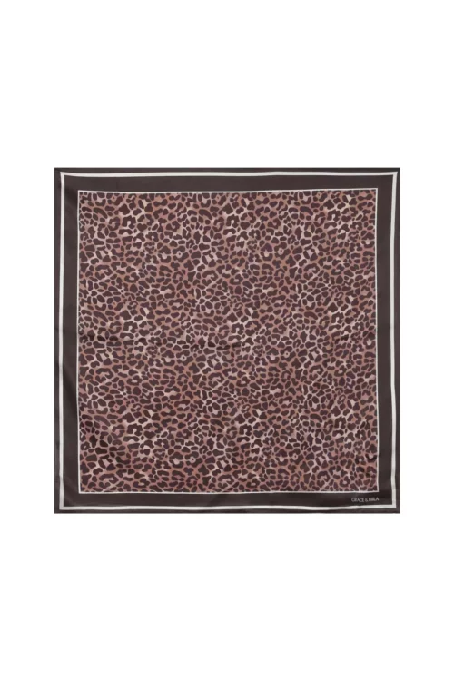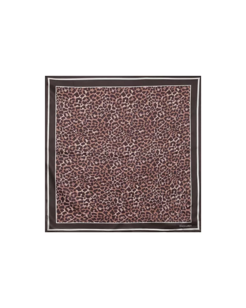 Il foulard è realizzato in 100% seta naturale, un tessuto pregiato che garantisce morbidezza al tatto e una lucentezza raffinata. Con il suo stampa leopardata intramontabile, questo accessorio aggiunge un tocco deciso e sofisticato a qualsiasi look, valorizzando anche gli outfit più minimal e contemporanei.