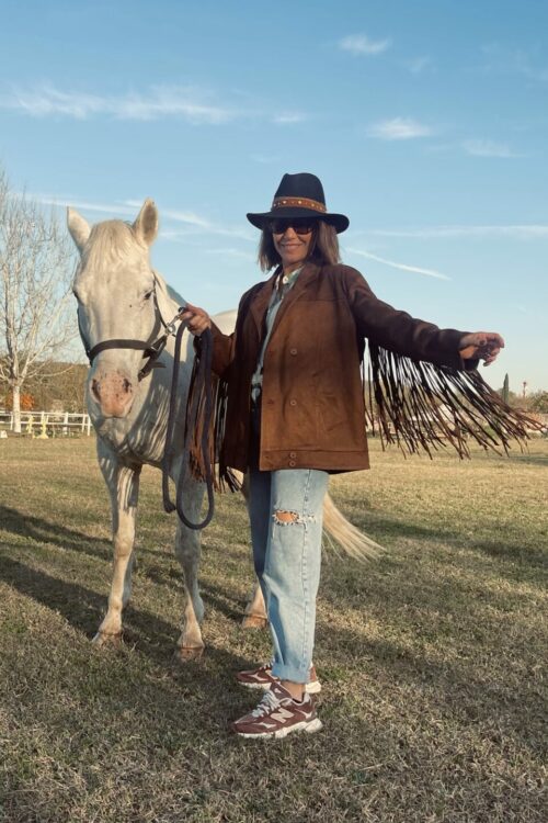 Rinnova il tuo guardaroba con questa giacca camoscio con frange, un capo dallo stile unico, perfetto per completare outfit casual e sofisticati.