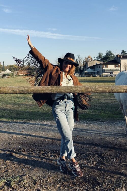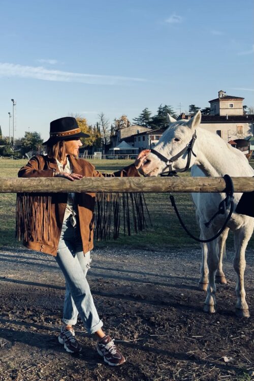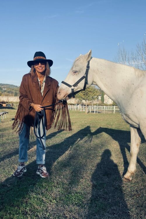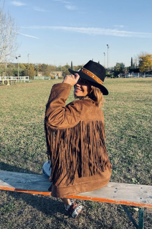 Giacca camoscio con frange – Doppio petto over Made in Italy