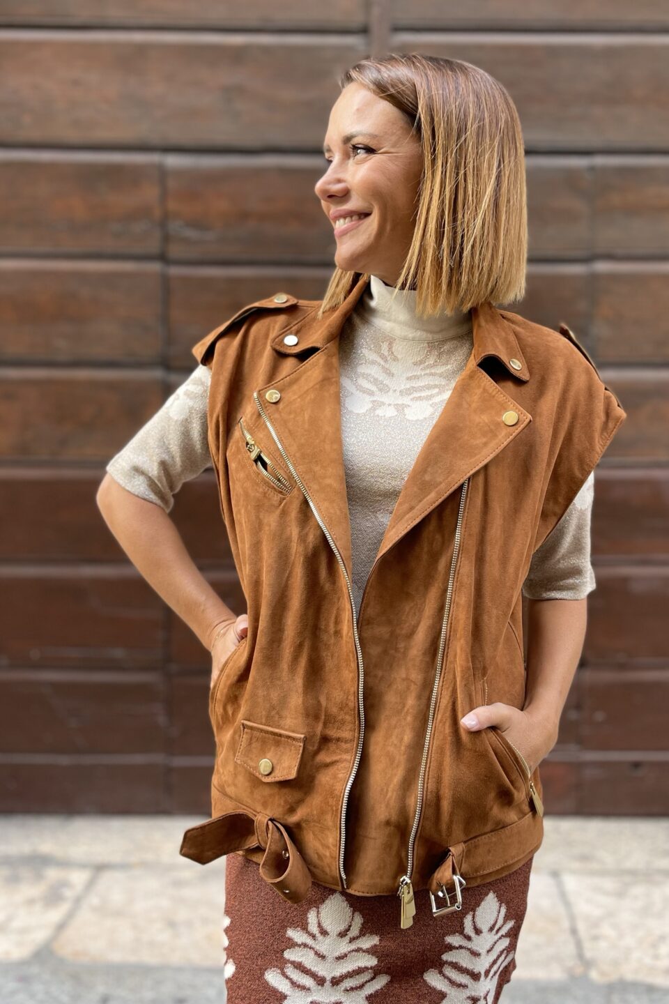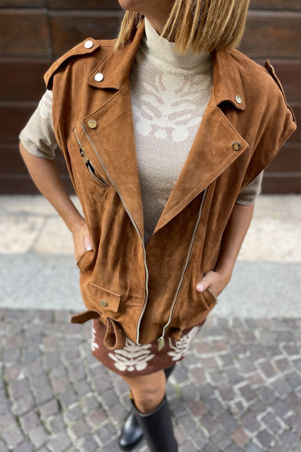 Giacca camoscio smanicata