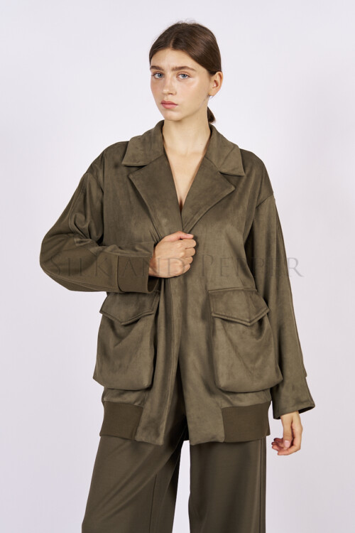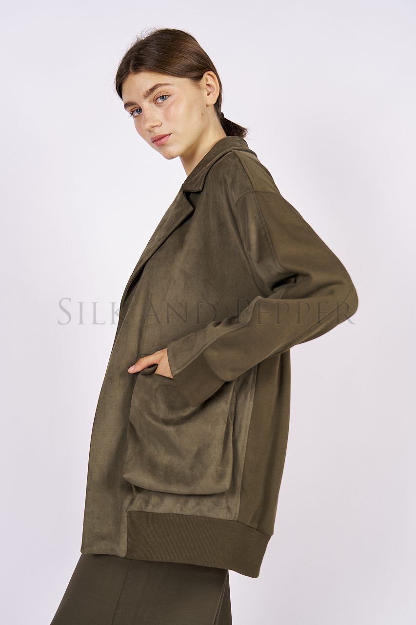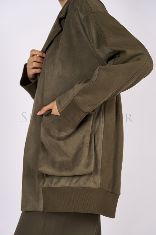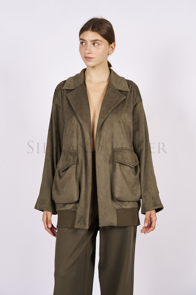Giacca Over Effetto Scamosciato – Verde Militare | Made in Italy