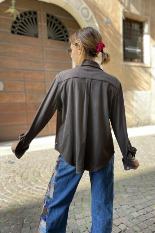 Aggiungi un tocco di eleganza al tuo guardaroba con questa giacca suede cioccolato dal design raffinato e intramontabile. Realizzata in Italia, unisce la morbidezza della finitura scamosciata alla comodità di una vestibilità regolare, perfetta per ogni occasione.