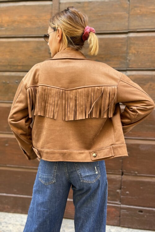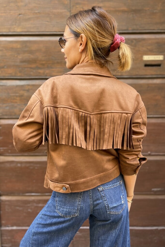 Aggiungi un tocco di stile western e raffinato al tuo guardaroba con la giacca suede con frange.