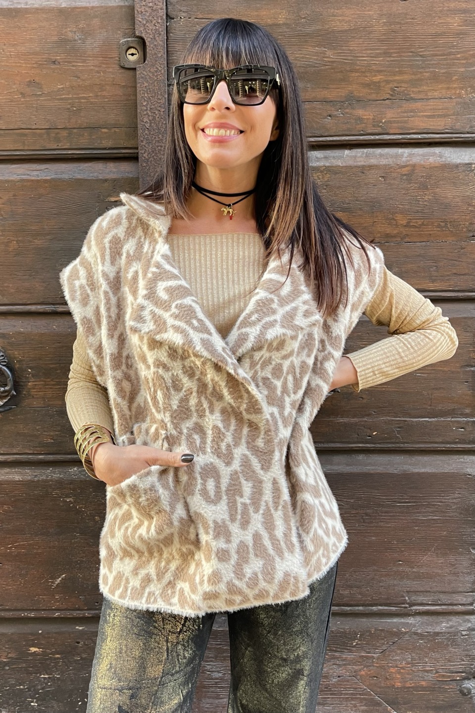 gilet smanicato fantasia leopard