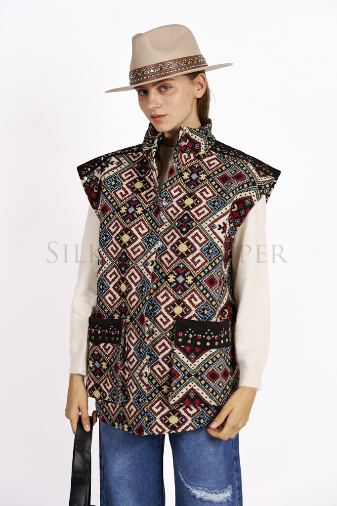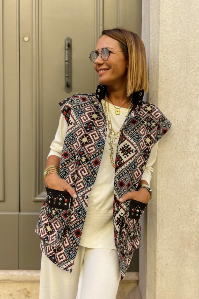 Perfetto da indossare sopra camicie, bluse o t-shirt, questo gilet etnico chic donna è l’ideale per creare outfit casual ma ricercati, con un tocco boho e di personalità.