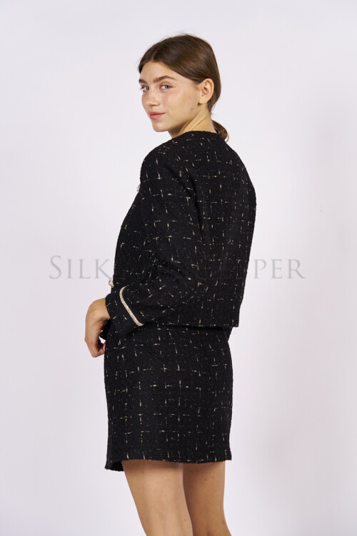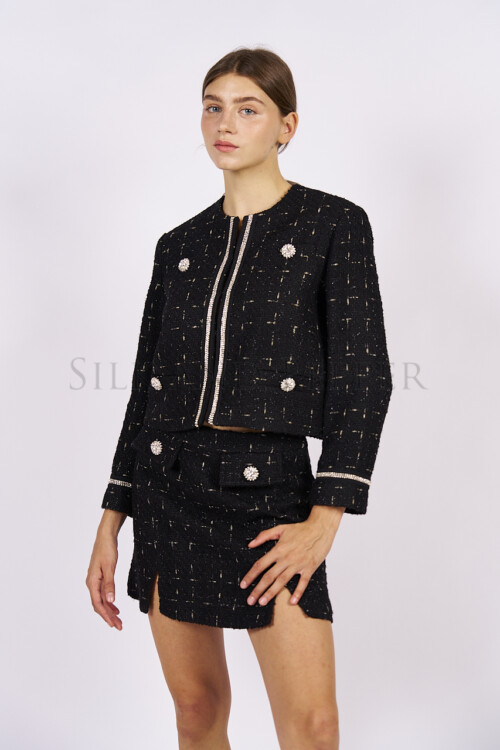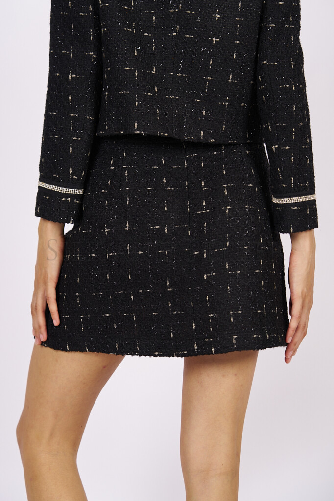 Gonna Corta in Tweed con Bottoni Gioiello – Made in Italy