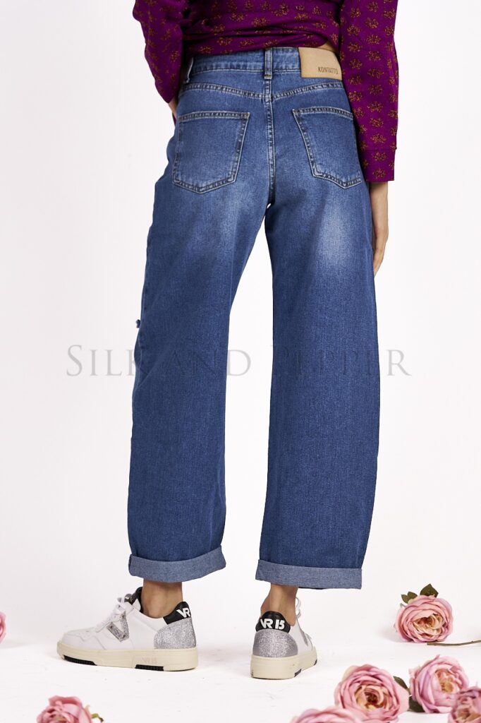 Il design presenta le classiche tasche da jeans e una finitura lavata che valorizza l’effetto vissuto, mentre il dettaglio destroyed dona un tocco grintoso e contemporaneo. Ideali da abbinare a sneakers o tacchi per un look urbano e versatile.