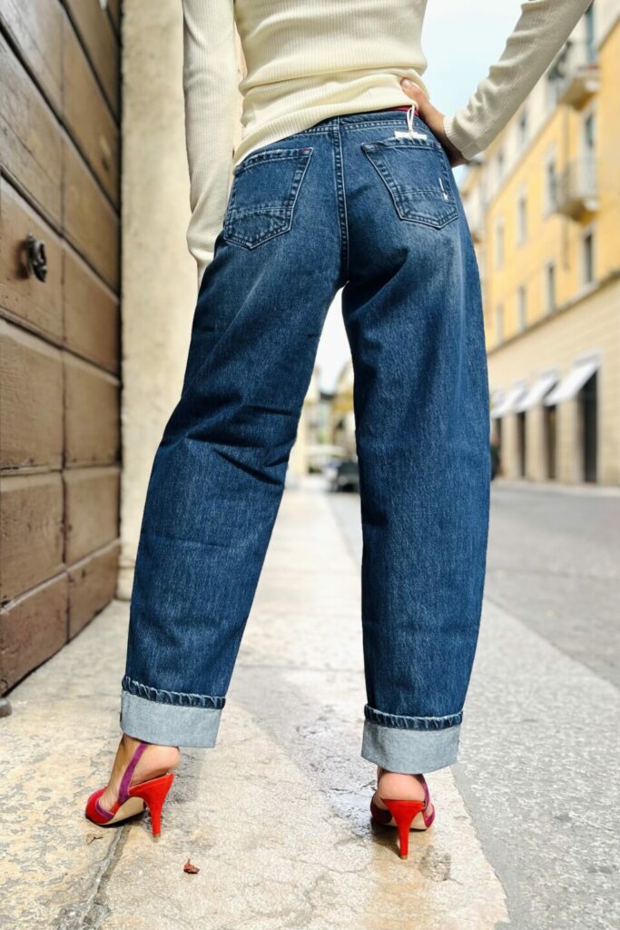 Scopri i jeans donna balloon fit perfetti per un look casual e di tendenza. Realizzati in 100% cotone, questi jeans uniscono comfort e stile grazie alla loro vestibilità morbida e contemporanea.