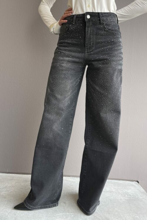 Jeans Barrel Fit Neri con Strass – Made in Italy