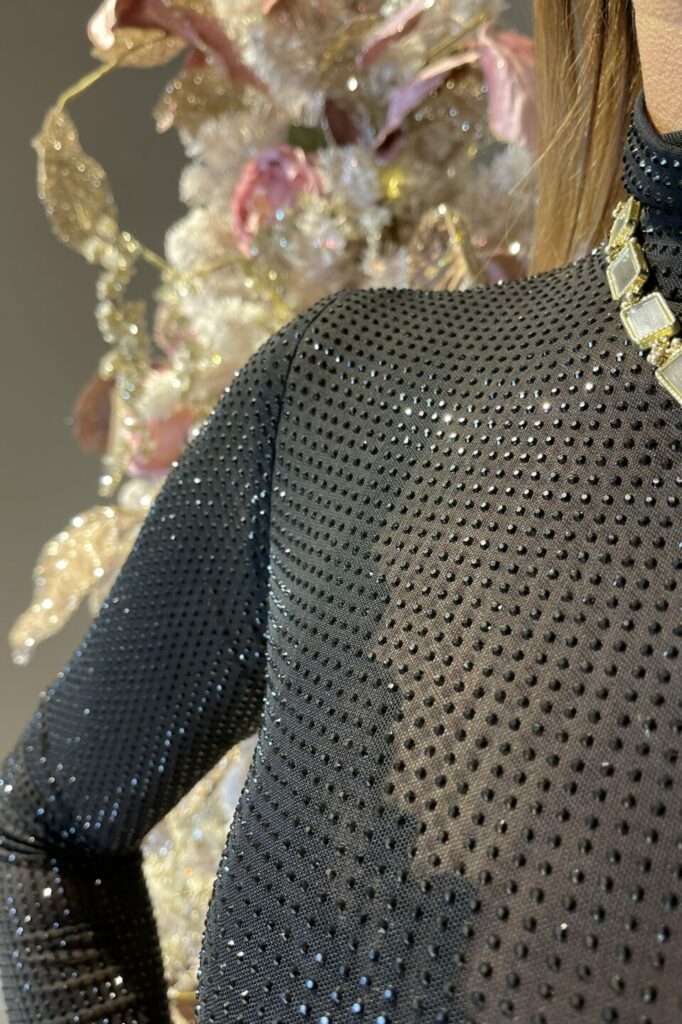 Lupetto tulle strass nero