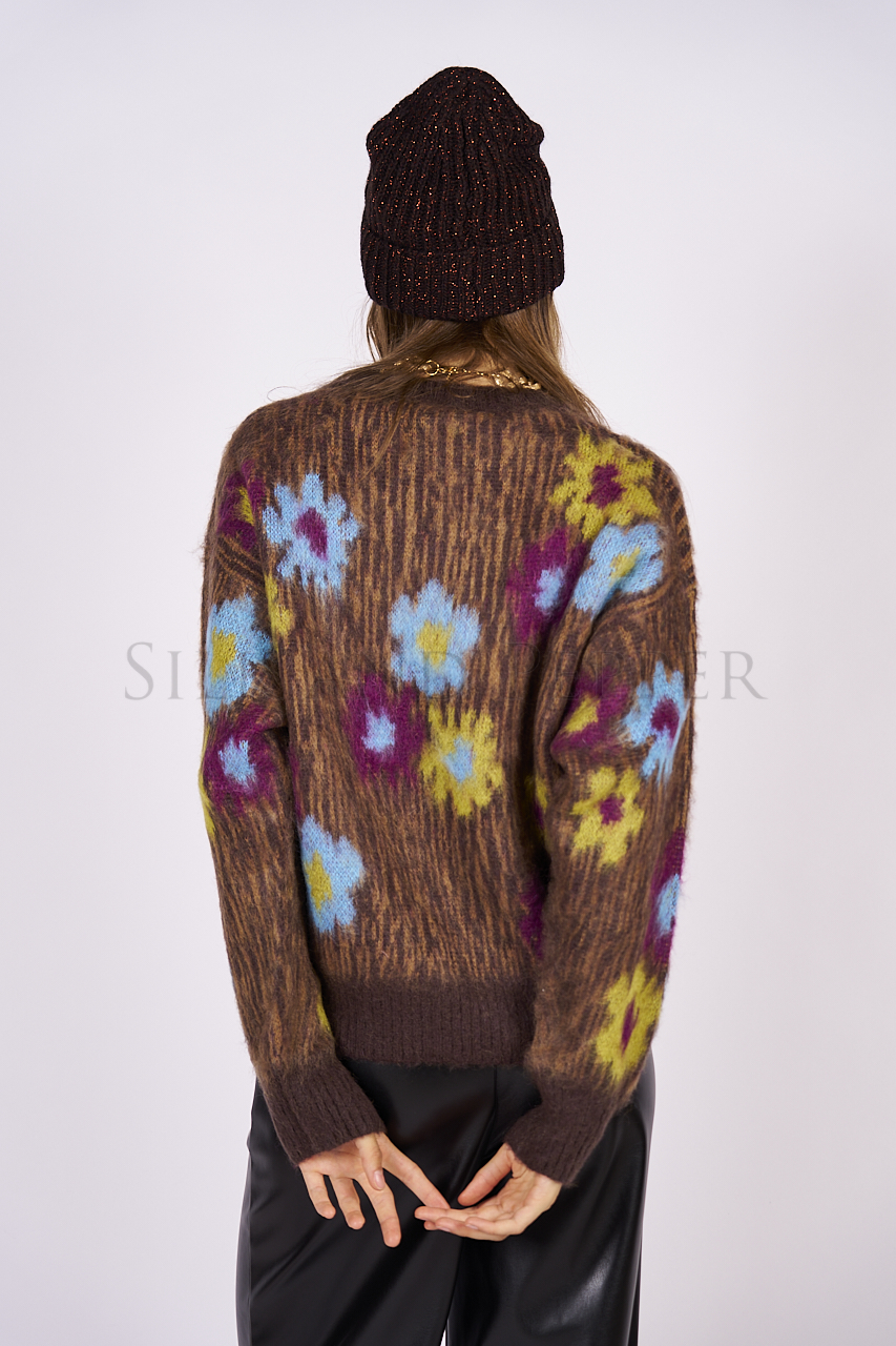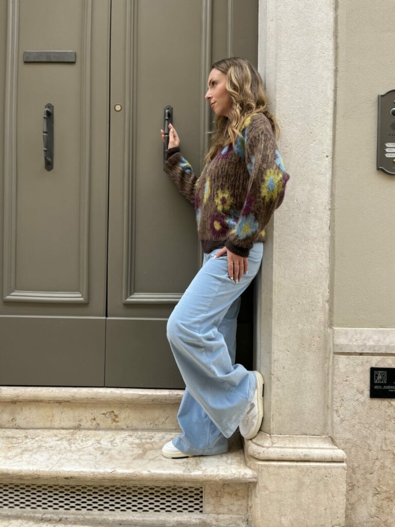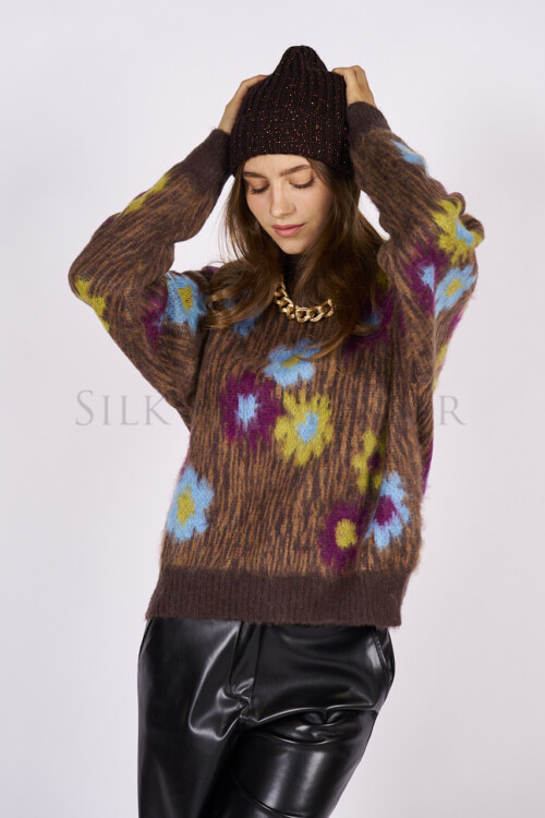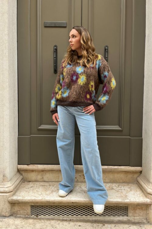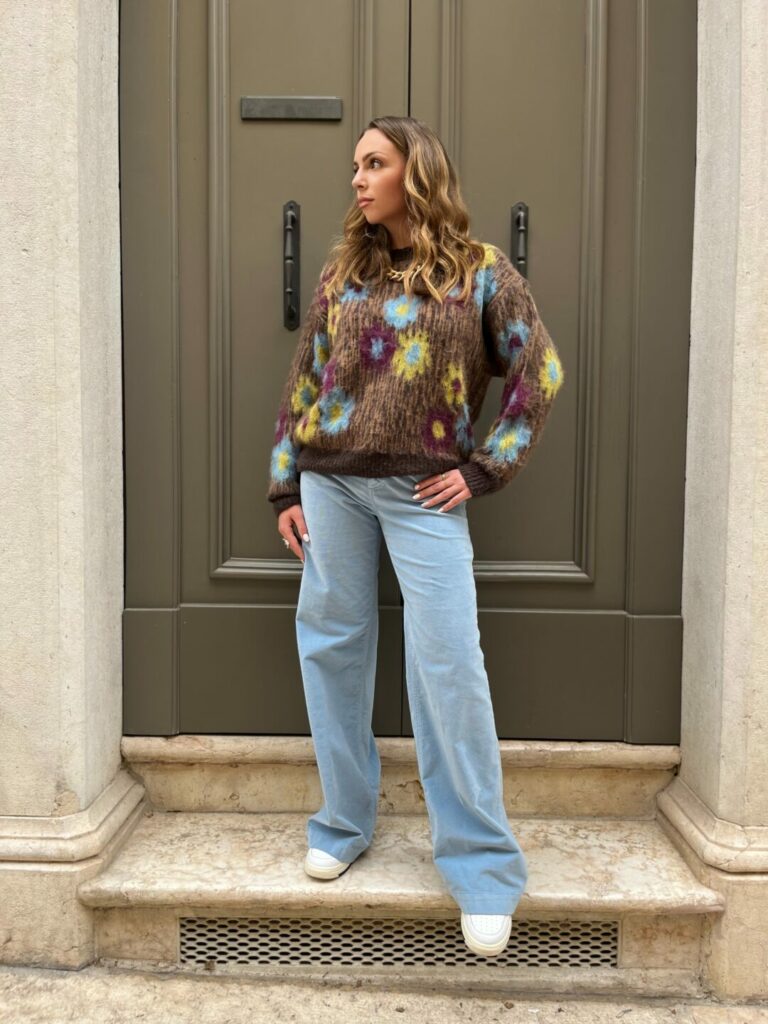 Maglia Girocollo Maculata con Fiori Colorati | Made in Italy
