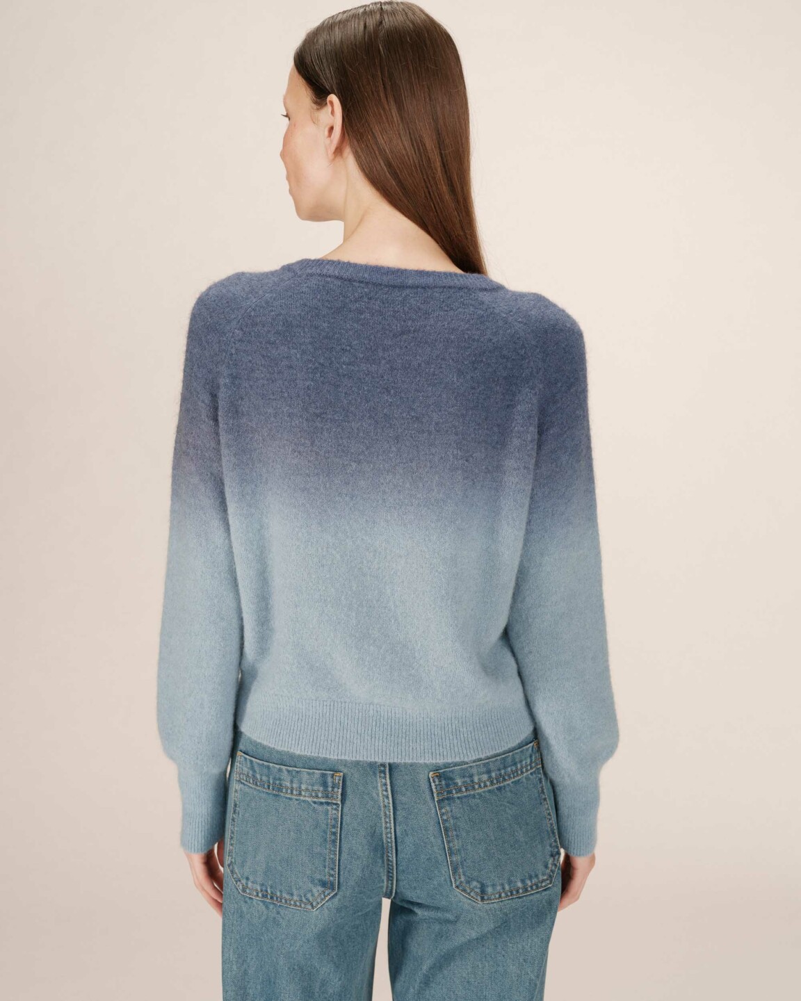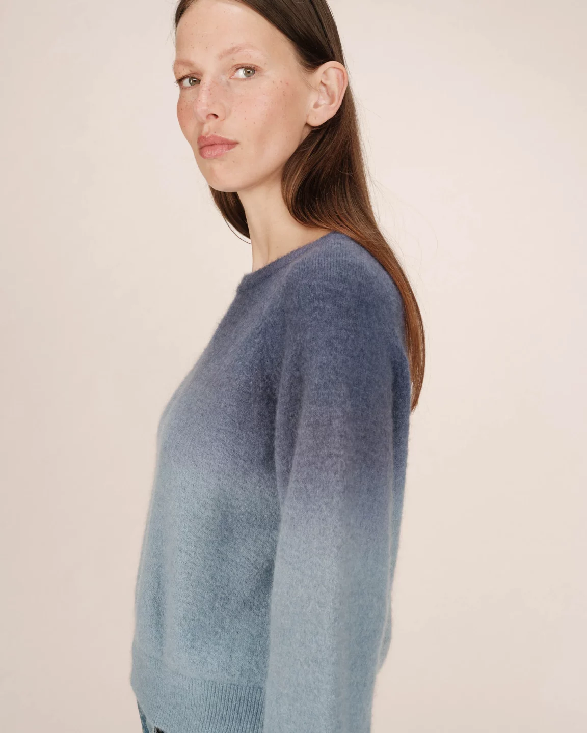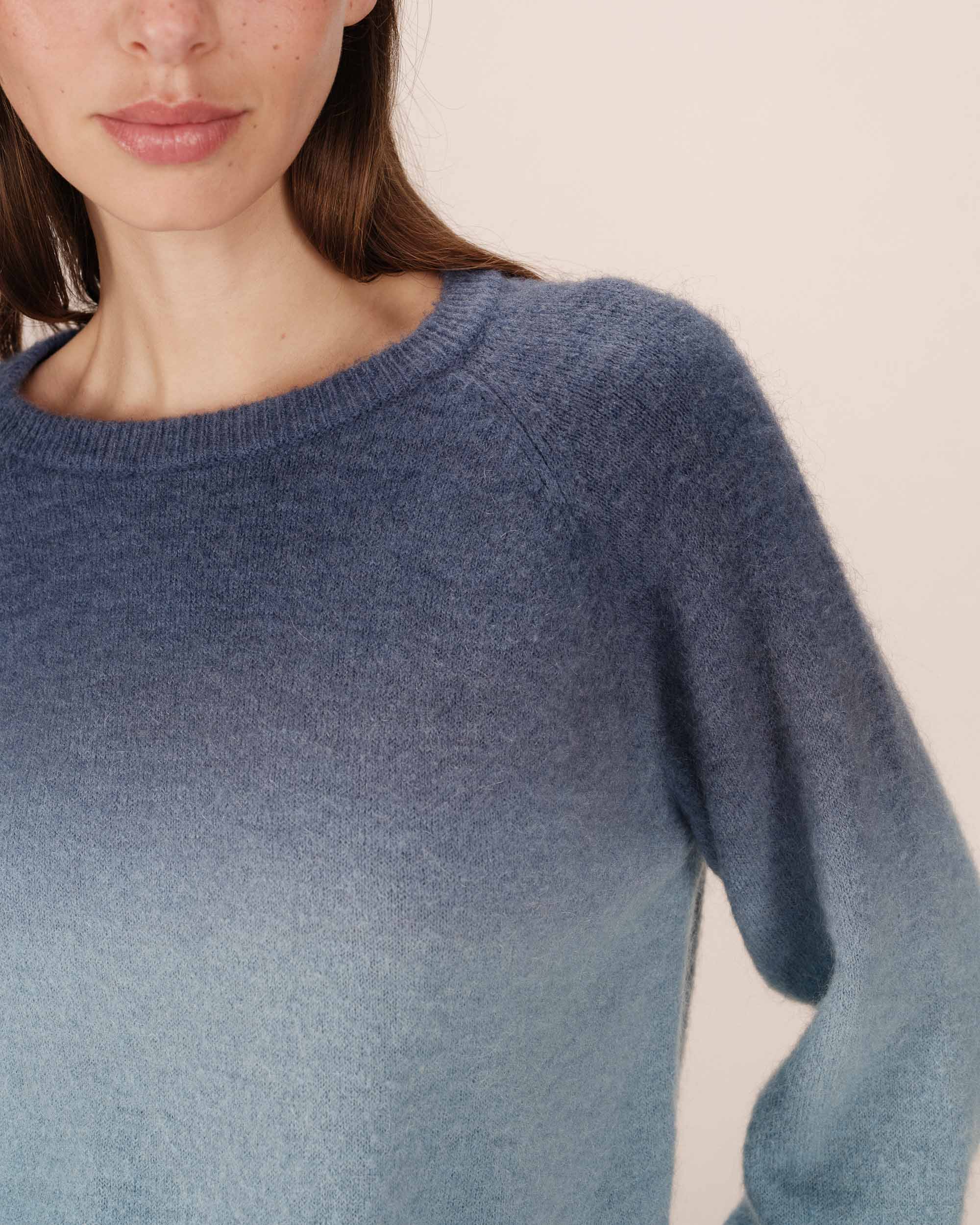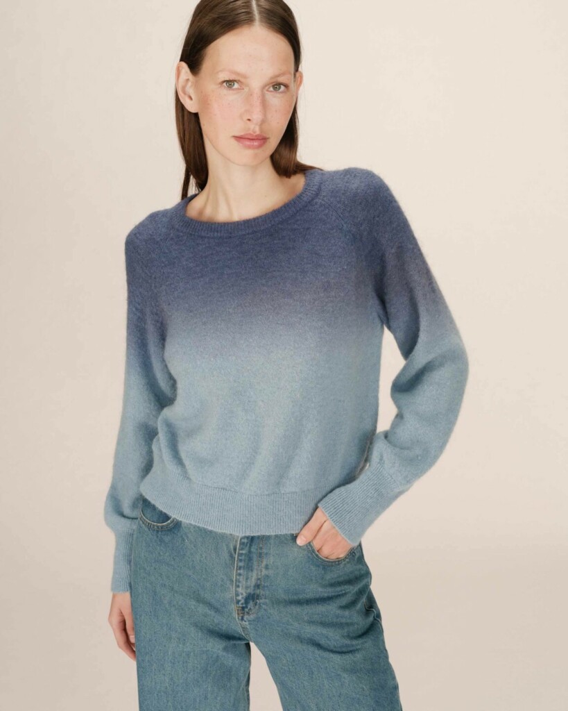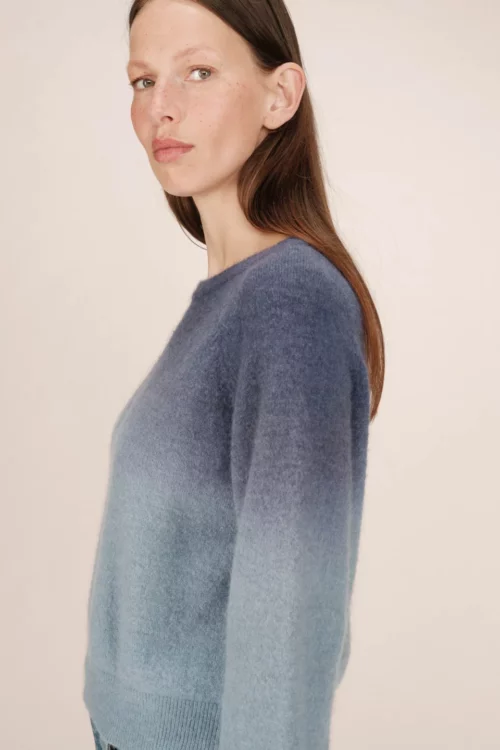 Maglione Dip Dye Blu Donna in Jersey – Sfumature Denim e Maniche Lunghe