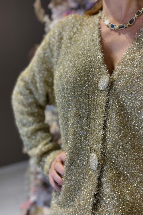 Maxi Cardigan Oro Lurex con Bottoni Oro – Manica Lunga