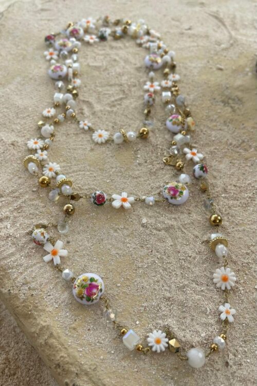 Il Ciondolo Lungo Fantasia FIORI cattura l’essenza del bohemien chic con le sue perle multicolori scintillanti e il suo design versatile che può essere indossato in doppio o triplo giro. È un accessorio indispensabile per chi desidera aggiungere un tocco di luminosità e colore al proprio guardaroba.