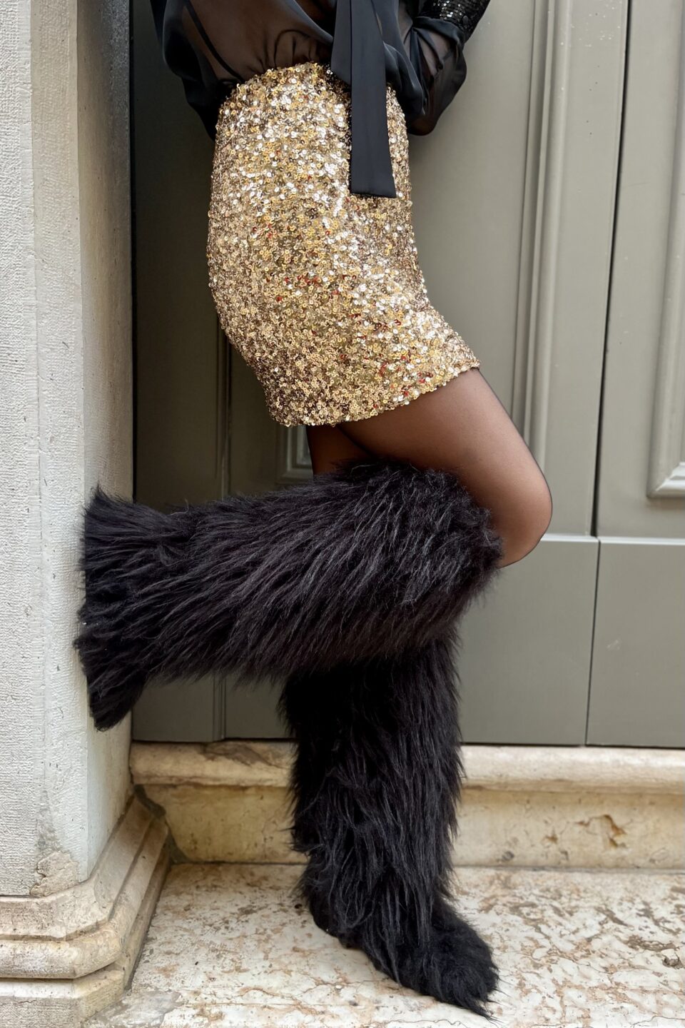 mini gonna paillettes oro